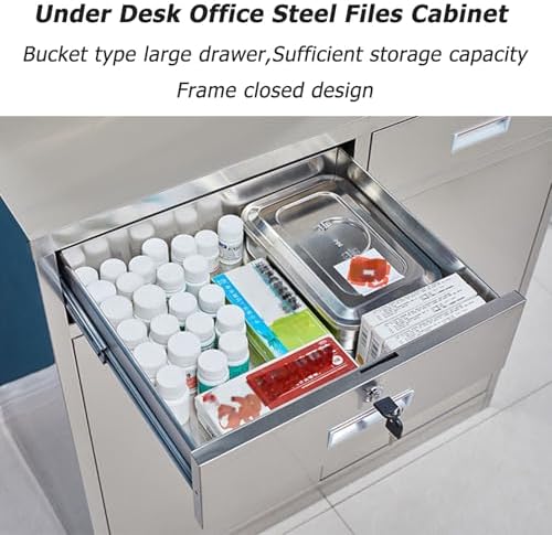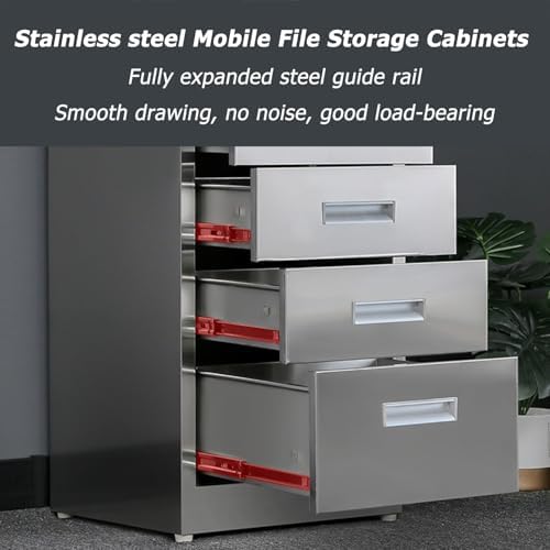 Introducing our Stainless Steel Mobile File Cabinet with Lock, designed to elevate your office organization while ensuring security and convenience. This under-desk office filing cabinet is crafted from durable stainless steel, offering a strong and stable structure that can support up to 300 lbs. Its waterproof surface is not only easy to clean but also ideal for a busy workspace. Experience ample internal storage space along with wide countertops, perfect for organizing office supplies, tools, or even kitchen essentials. The cabinet features a silent slide rail in the drawer, allowing for smooth and quiet access to your documents, enhancing your productivity without distractions. The thoughtfully designed embedded handle ensures easy opening of the drawer, minimizing the risk of injury to your fingers. Whether you need a multifunctional storage cabinet for your office, a kitchen storage solution, or a bedside table, this versatile piece meets various needs. Ideal for home or professional settings, our stainless steel filing cabinet can be used as a pantry cabinet, storage cupboard, or even a dresser for handicrafts. Optimize your space and keep your environment tidy with this stylish and practical storage solution.