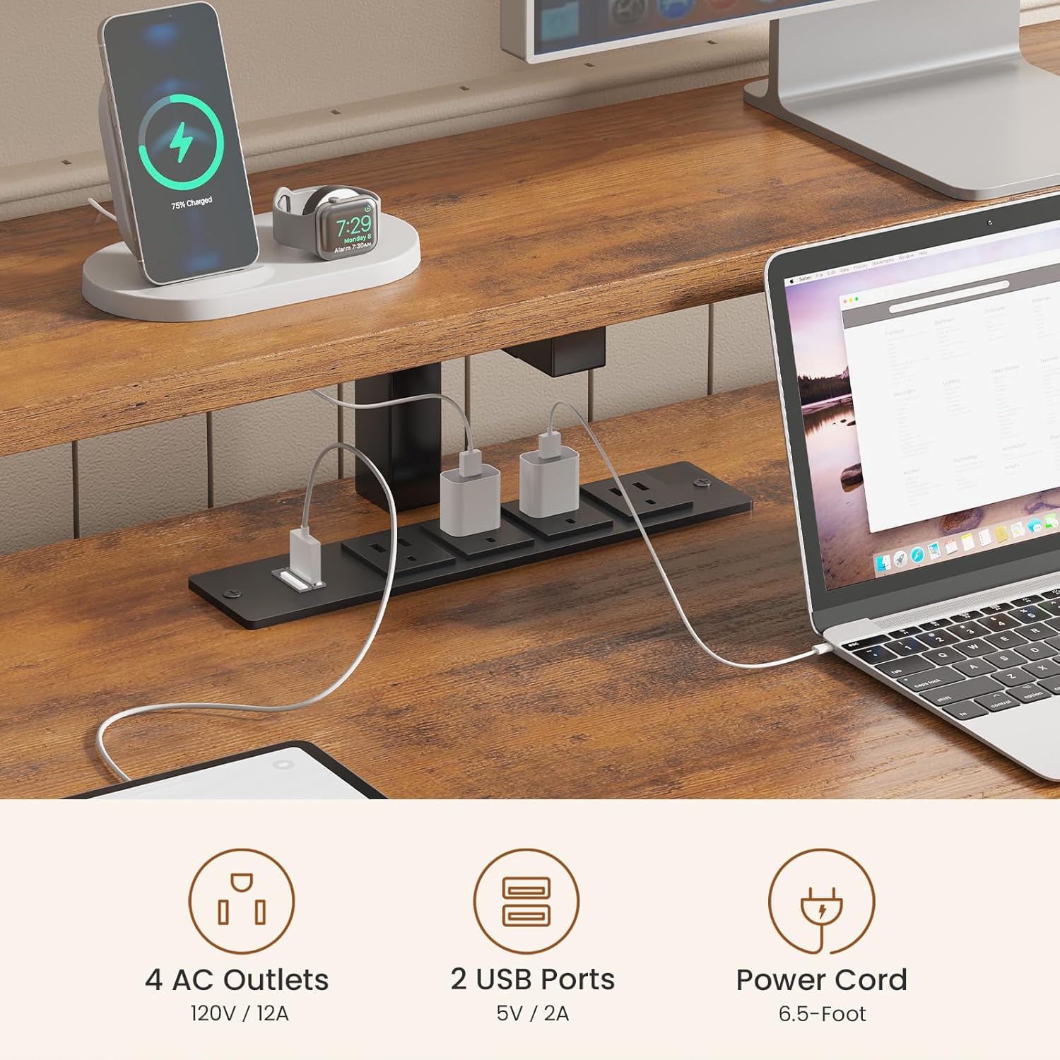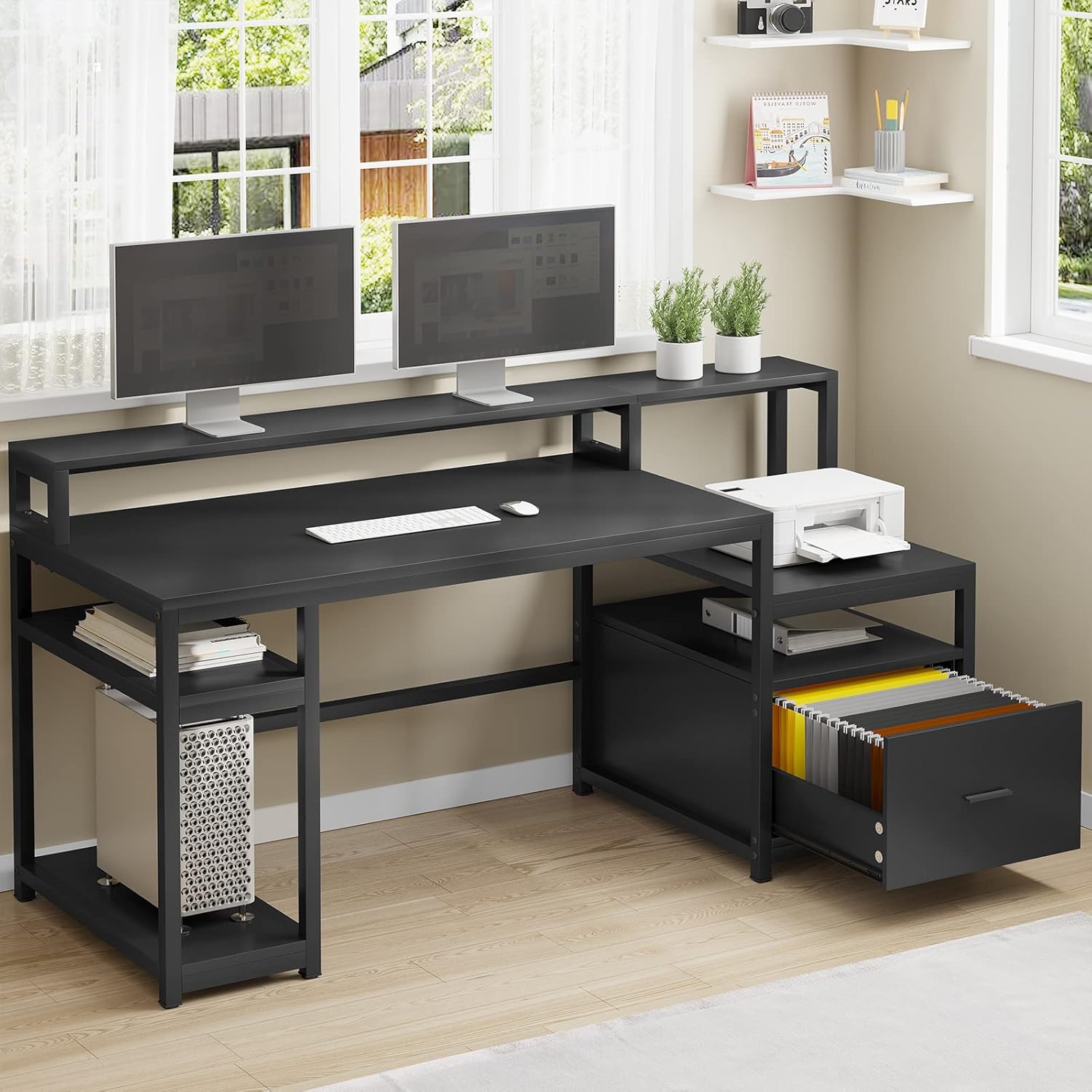 | Included Components | File Drawer, 4 Fabric Drawers, Printer Cabinet, Charging Station with 4 Outlets and 2 USB Ports, RGB LED Light Strip |