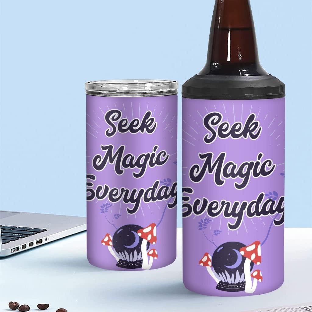Seek Magic Everyday is perfect for promotional events, craft parties, and home personalization. Events where can coolers are necessary: birthday, anniversary, wedding, bachelorette, bachelor, graduation, and celebration. You can also use them as a simple cup or beverage cover. Thick thermal insulation on our can coolers allows for the most versatile fit, and they keep your drink ice cold. Painting fits well on slim-style 12 oz cans, sodas, and similar size water bottles.
