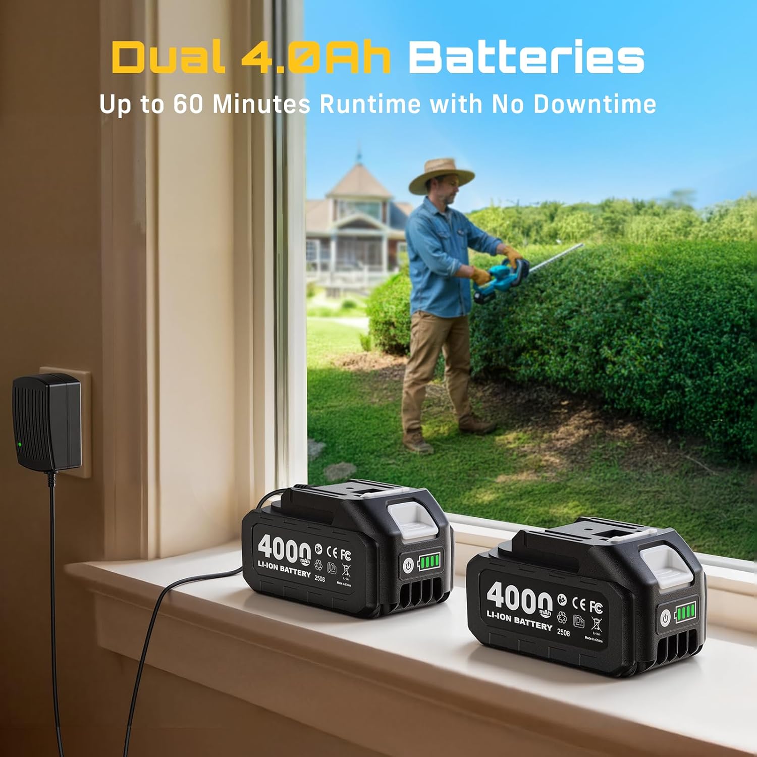 SEESII Cordless Hedge Trimmer and Leaf Blower Combo, 2 Pcs 4.0Ah Batteries+SEESII 2-in-1 Pole Pruning Shears: 1.6" Cutting Diameter Cordless Electric Pole Pruners