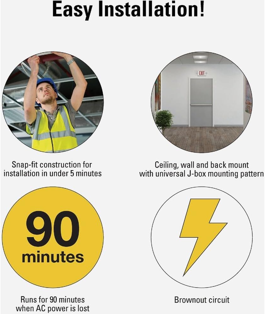Universal Exit Sign with Nickel Cadmium Battery, Selectable Red or Green, White Illumination