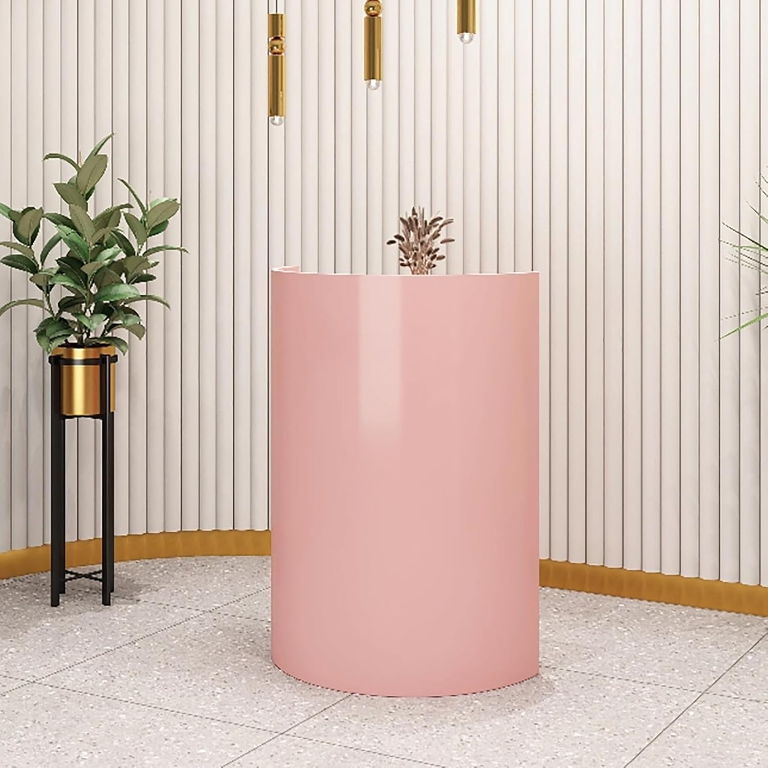 Reception Desk Front Counter Table with Cabinet Great Space Saver Receptionist Desk with Drawers and CabinetsIts earthy color, combined with the unique texture of the counter front, creates a chic and modern look.This wood retail counter is suitable for various occasions, such as barber shops, supermarkets, clothing stores, restaurants, or beauty salons.Spacious Working AreaIt has a spacious tabletop measuring ample legroom.Convenient Top ShelfIt provides an extra space to place small and light items.Wrap-Around Side PanelsThis thoughtful design gives you an exclusive personal area, bringing a full sense of privacy and security.Unique TexturesIt provides a chic and contemporary looking of this front desk for lobby.The Cable Grommet DesignIt is used for cords or wires management for your office desk. There is no more messy cables anymore.Notice:1. Note: Due to the particularity of the furniture, there will be slight errors in the finished product, which is normal. The data is for reference only and must be based on the actual product. We hope for your understanding!2. If you have any questions, you can contact us by email, and we will definitely give you a satisfactory solution as soon as possible.