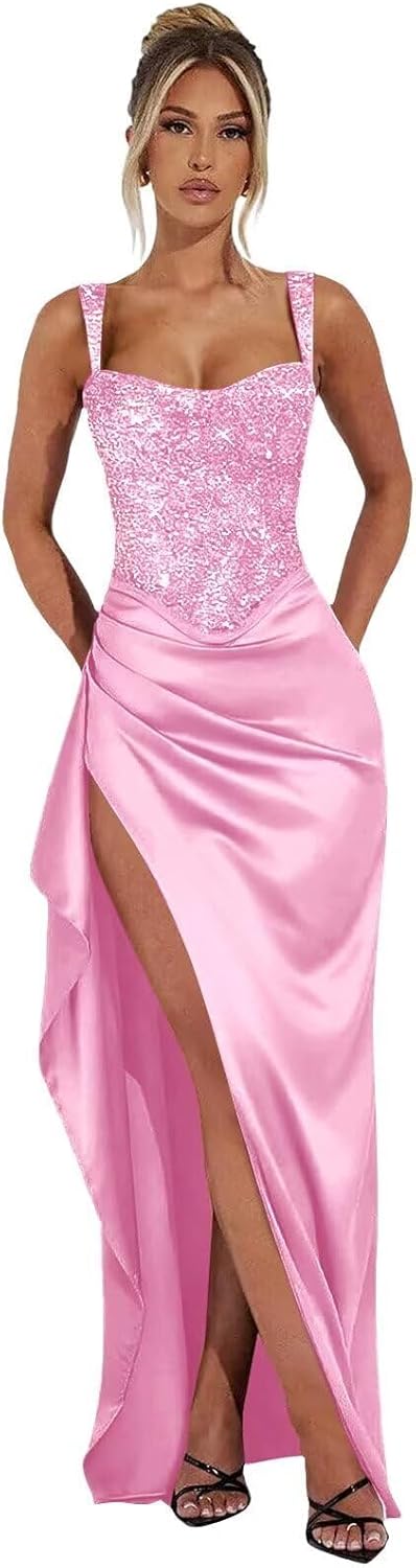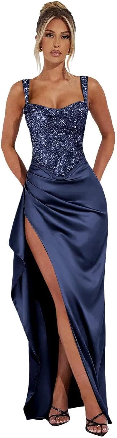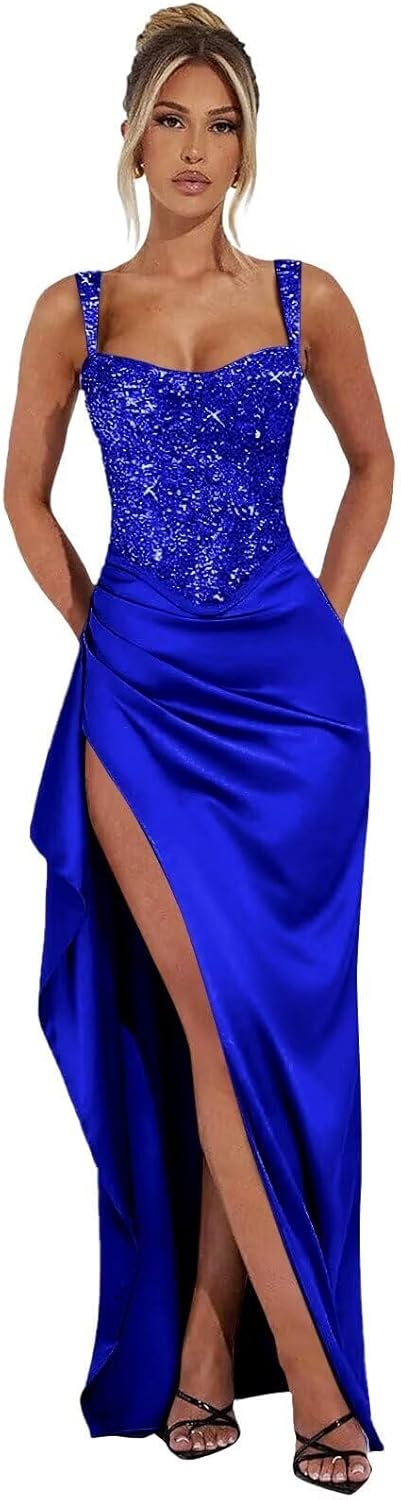 UUJJSO Spaghetti Straps Prom Dresses 2026 Glitter Sequin Ball Gowns with Slit Satin Formal Evening Dresses for Women. Standard Size US2 Bust: 32.5"---Waist: 25.5"---Hips: 35.75" US4 Bust: 33.5"---Waist: 26.5"---Hips: 36.75" US6 Bust: 34.5"---Waist: 27.5"---Hips: 37.5" US8 Bust: 35.5"---Waist: 28.5"---Hips: 38.75" US10 Bust: 36.5"--Waist: 29.5"---Hips: 39.75" US12 Bust: 38"----Waist: 31"-----Hips: 41.25" US14 Bust: 39.5"--Waist: 32.5"---Hips: 42.75" US16 Bust: 41"--Waist: 34"---Hips: 44.25" US16W Bust: 43"---Waist: 36.25"------Hips: 45.5" US18W Bust: 45"---Waist: 38.5"---Hips: 47.5" US20W Bust: 47"---Waist: 40.75"----Hips: 49.5" US22W Bust: 49"---Waist: 43"----Hips: 51.5" US24W Bust: 51"---Waist: 45.25"----Hips: 53.5" US26W Bust: 53"---Waist: 47.5"----Hips: 55.5" Customized Sequin Satin Prom Dresses for Women 2026 Spaghetti Straps Mermaid Pleated Formal Dress with Slit Bodycon Evening Dress You Needed:A.Full Bust _____ inch or ___ cm.B.Waist _____ inch or ___ cm. C.Hips _____ inch or ___ cm.D.Height: _____inch or ___ cm.E.Hollow (collarbone) to floor____ inch or ___ cm.F.Shoulder to Shoulder ____ inch or ___ cm.G.The heel of your shoes: _____inch or ___ cm.H.The date you need the dress____.OTHER NOTES:1 .The real color of the item may be slightly different from the pictures shown on website caused by many factors such as brightness of your monitor and light brightness. 2.Please allow slight deviation for the measurement data. You are very welcome to costume dress for any question, we will always be here with you.
