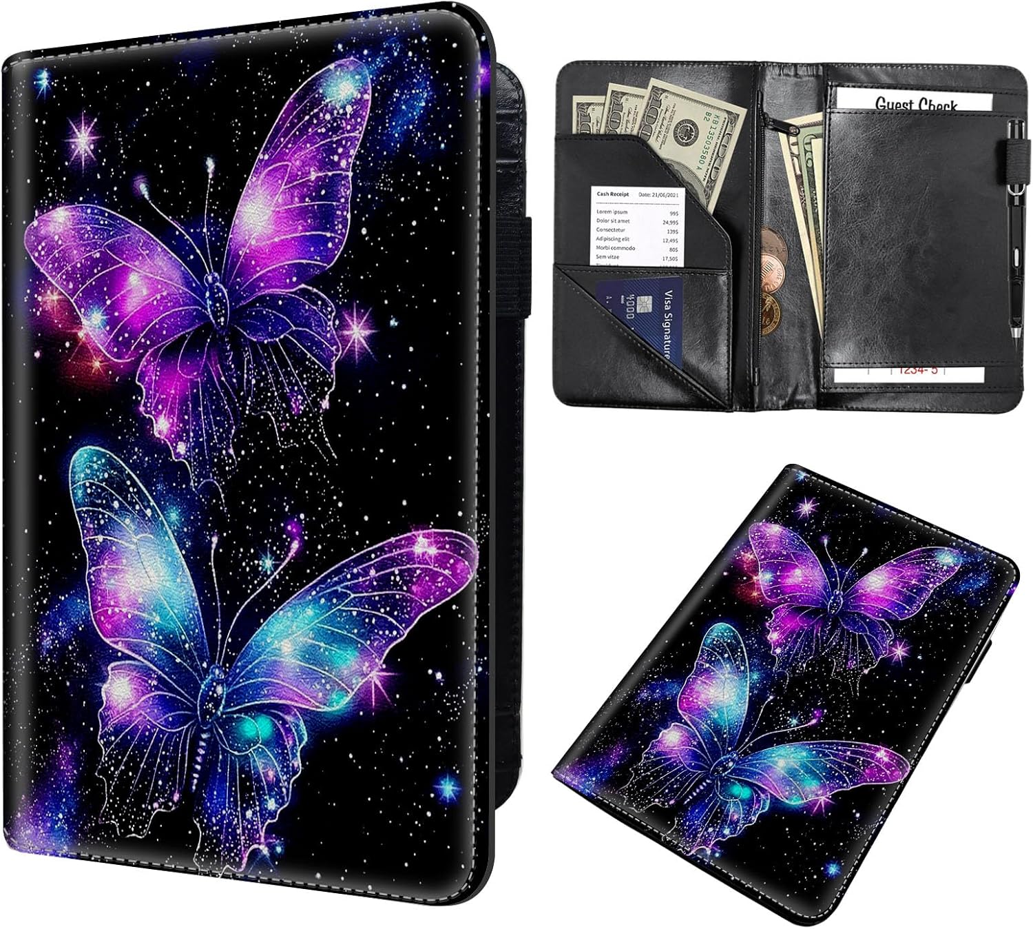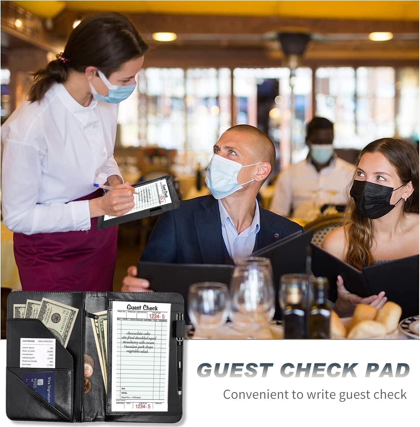 Still serve in the jumble ? that really drive crazy. Let our cute server book help you to get well organized, and to make you work professtionally and effectly It also can be used as a personal organizer for travel, school, or shopping ➤PREMIUM MATERIAL Adopt soft faux leather with uniform seam and well made,looks high class, practical and durable for long time to use ➤PERFECT SIZE 5 x 7.7 inch server book fit regular guest check,It's dainty and cute,Easy to hold or insert into apron pockets ➤DESIGNED 7 POCKETS Hold everything server/waiter need,perfectly keep organized ☆ 3 layered pockets for credit card,wine/food menu specils,note pads,check and bill etc ☆ 1 big pocket at right side,have plenty room to hold big amount money ☆ 1 zippe pocket at left side safely holds all of your loose change,tip money and Coin or some things important like check or notes from your customers ☆ 1 card slot compartment for standard guest check ☆ 1 pen holder on the side for easier access to write It's a lightweight and portable server book that's necessary for waiter/waitress/waitstaff/bartender in any restaurant Cafes bars and Clubs PACKAGE CONENT 1 X Server book organizer
