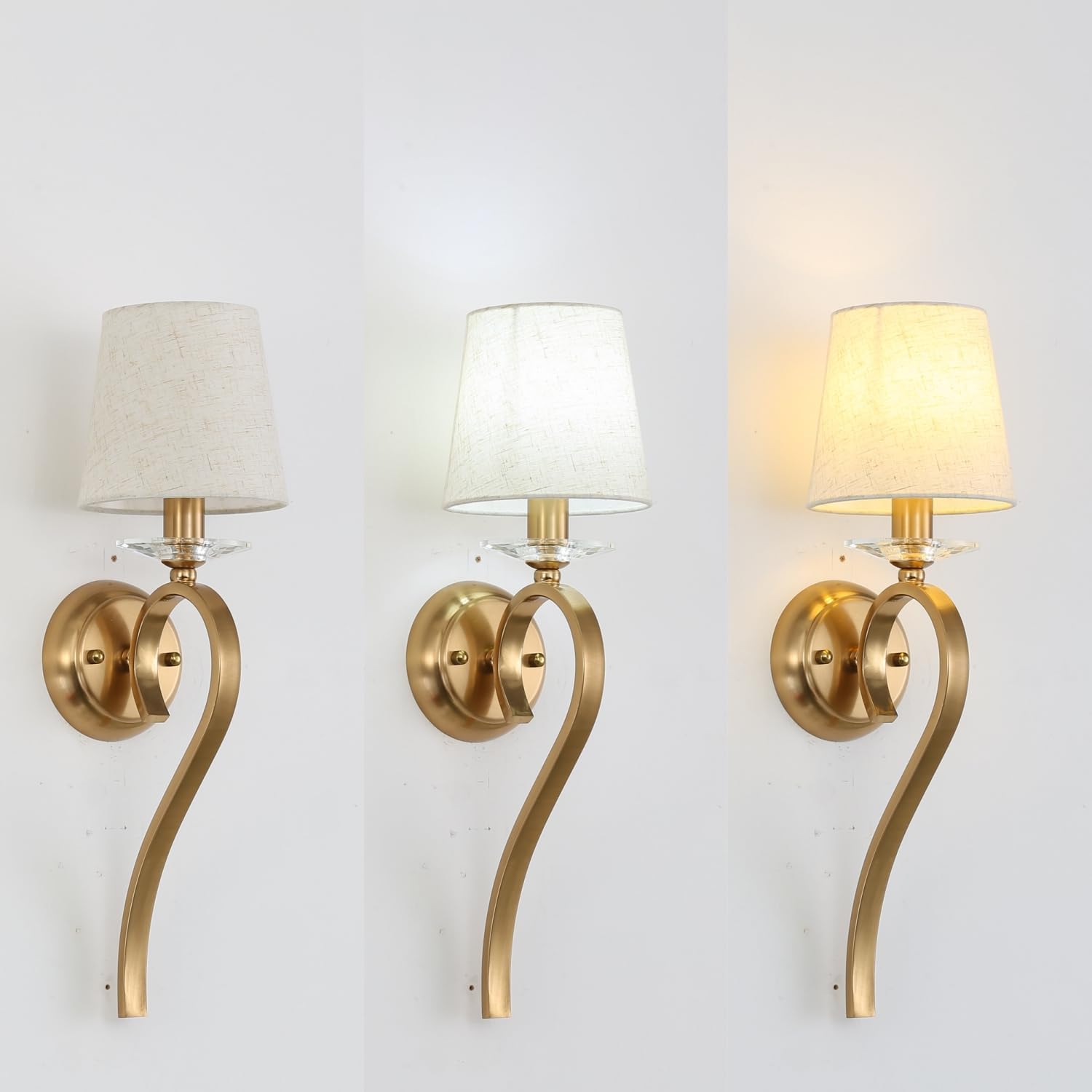 1-Light Mid Century Modern Iron Gold Vanity Light, Set of 2 Contemporary French Country Wall Sconce for Bathroom Hallway Living Room Bedroom Mirror Cabinet Style: Modern, Art Deco, Mid-Century Material: Metal+ Fabric Voltage: AC85-250V Maximum Wattage: 60W Suitable Places: Indoor Lighting Space: 3-8㎡ Installation Type: Hard-wired Body Color: Gold Lampshade Color:Beige/ Linen/ Black/ Grey Bulb Type: E12 Base Incandescent, LED Bulbs or Dimmable Light Bulbs(Bulbs not Included) Package Contents: 2 x Light+ 2 x Fittings Bag+ 1 x Installation Instructions Note: We are willing to sent your all parts of the fixture a replacement if it is broken or doesn't work.