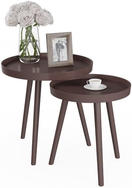 Bring the best of style and function to your home with this set of 2 Nesting End Tables by. Boasting clean, modern lines with enduring mid-century modern style, these living room or bedside tables feature raised lips around the tray tops and have a 22-pound weight capacity each, making the end or side table set ideal for showcasing decorative displays and vignettes. Each tapered spindle leg features a soft foot pad to protect your floors from damage, and each table allows tool-free assembly in minutes for quick setup and storage.