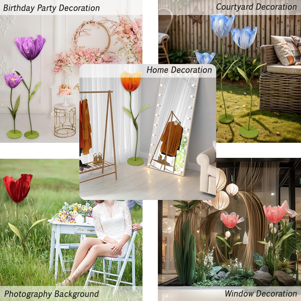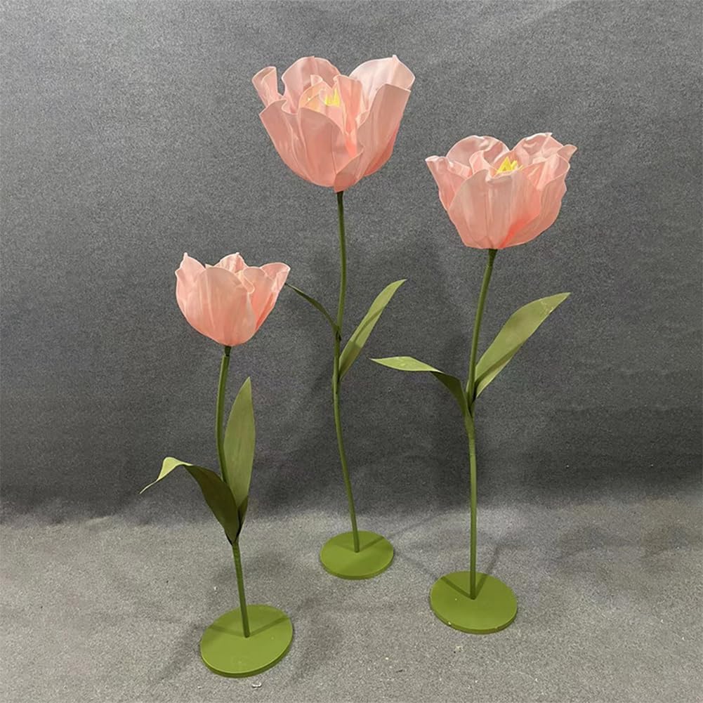 Feature:Product Name: Giant Artificial Tulips Flowers Material:EVA/Aluminum tubeSize: 1.2m/3.9ft, 1.4m/4.6ft, and 1.6m/63ft Weight: about 4000gPackage Includes:3x Huge Artificial EVA TulipNote:Manual measurement, please allow slight errors on sizeThe color may exist a slight difference due to different screen displays.