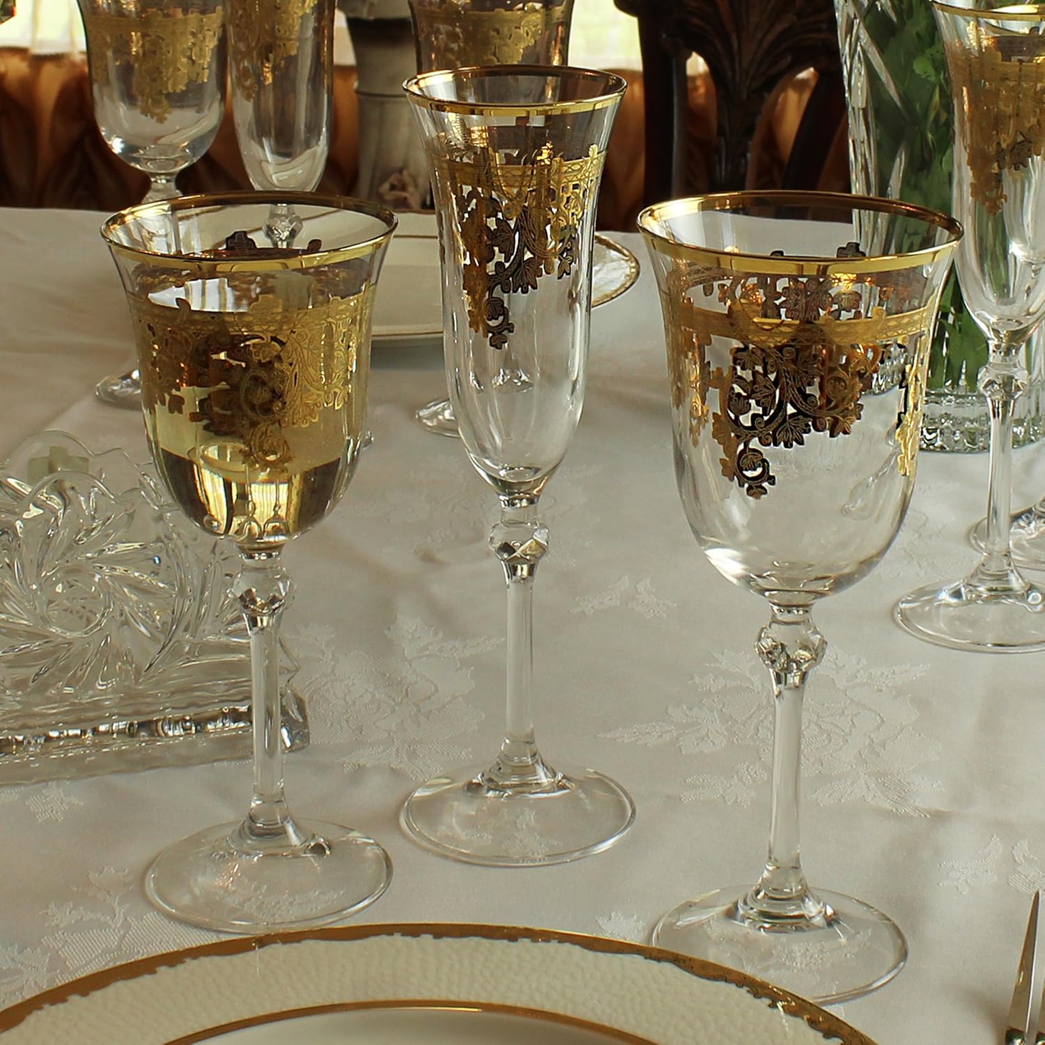 | Item Type Name | Set of 4 Embellished 24K Gold Crystal White Wine Goblets-Made In Italy |