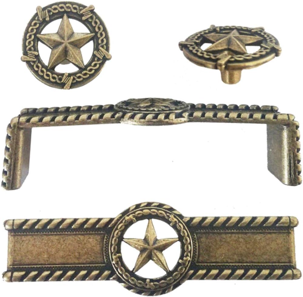 Brand new, Vintage Barbwire Star handles, pulls and knobs, in these beautiful finishes: Antique Brass Oil Rubbed Brass Old Silver That Designer Kitchen that you always wanted. That spacious outdoor Kitchen. Revise an old piece of furniture, add elegance to a new piece. The more you order, the cheaper the price Ask about discounts on large orders, International orders and corporate ordering, just send me a message. Home builders, we love working with you.