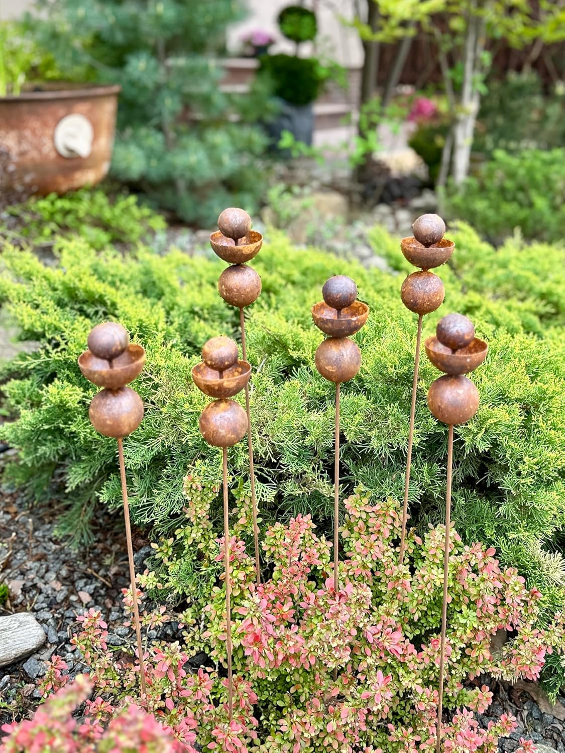 Set of 6 Rustic Metal Flowers – Timeless Garden Charm Add year-round beauty to your garden with this handcrafted set of 6 rusty metal flowers. Each bloom is made from durable steel with a natural rust finish, perfect for garden beds, pots, or pathways. Weatherproof and maintenance-free, they bring rustic charm and artistic flair to any outdoor or indoor space. A unique gift for garden lovers and nature enthusiasts. All of our products are finished with a special solution that makes the feeders durable and safe for birds, while keeping them looking natural.