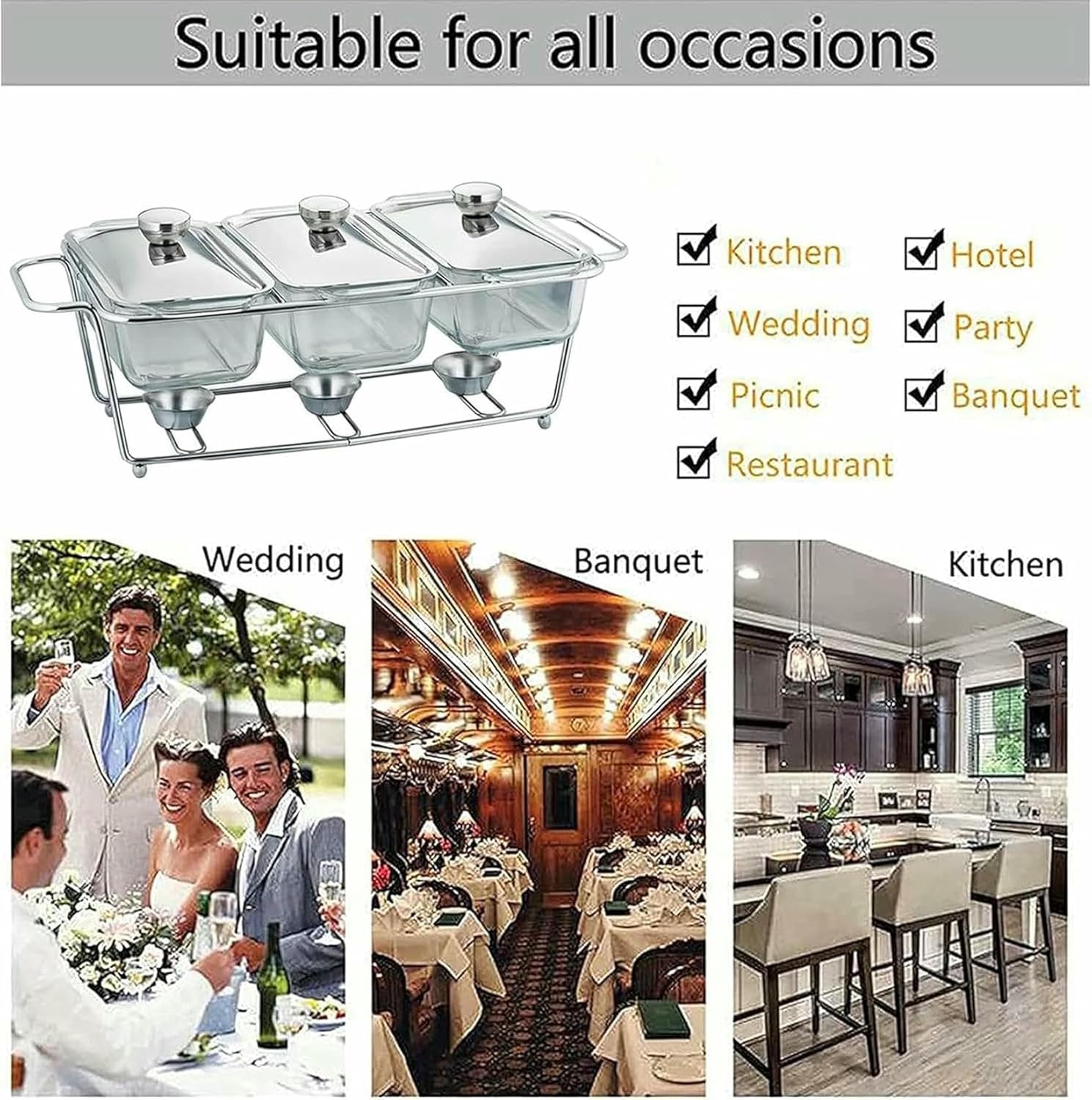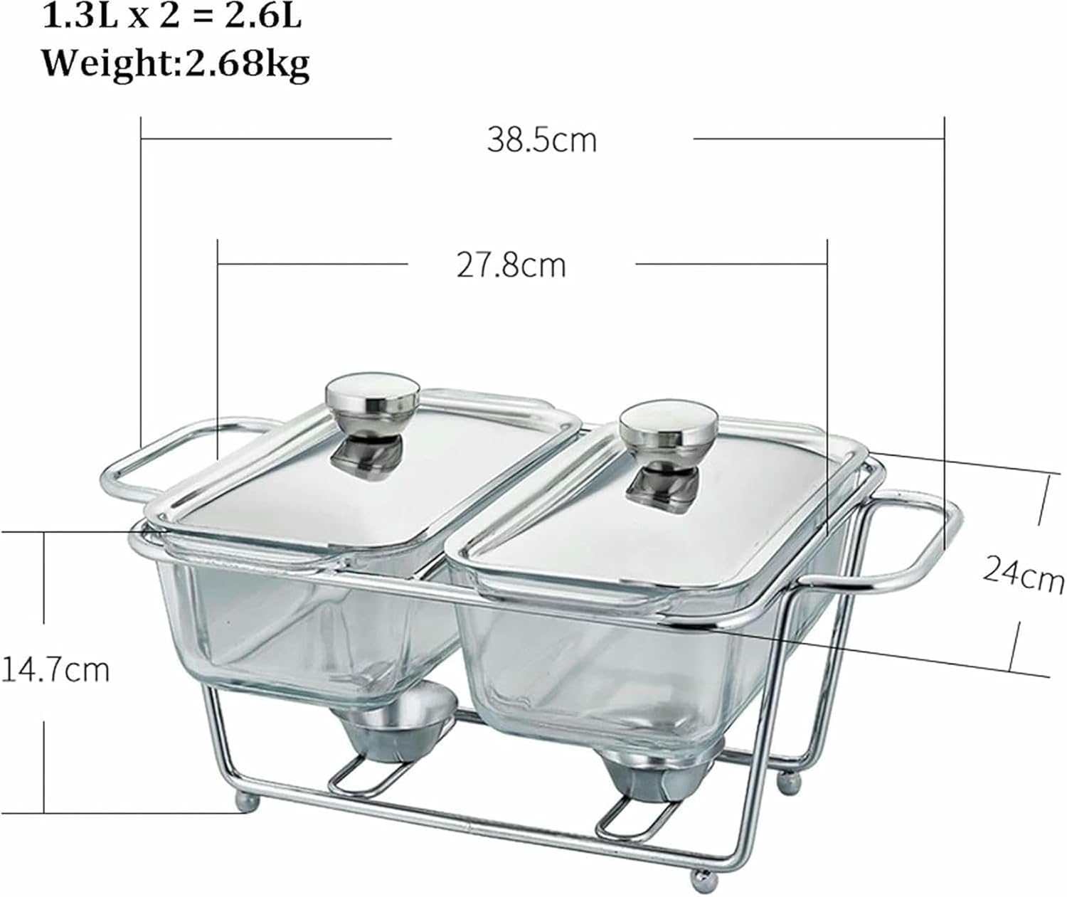 Chafing DISH in stainless steel, Large size and set of Buffet Plates Product Description You always wonder how to hold and warm your dishes carefully prepared to serve large gatherings, events, buffets, celebrations and self-service?Try our wonderful stainless steel chafing dish, all the problems will be resolved!Characteristics: dishes are very important for events with caterer, schools, hotels and cafeterias, where a large amount of food must be kept warm permanently.This is the main reason why we have designed the most durable dish that is not only durable, but which will also keep your food warm for a while.The material used to make these dishes is high quality stainless steel, which makes it perfect.French: Specification: Material: Iron frame, glass, stainless steel cover capacity: 1.3 QT, 2.6 QT, 3.9 QT, Size: 33.4 x 14 x 15.2 cm, 38.5 x 24 x 14.7 cm, 50.8 x 24 x 14 cm The products include: 1 * Buffet set of, we will provide you with the best quality and the most sincere service.If you encounter problems, please contact us and we will answer you within 48 hours.