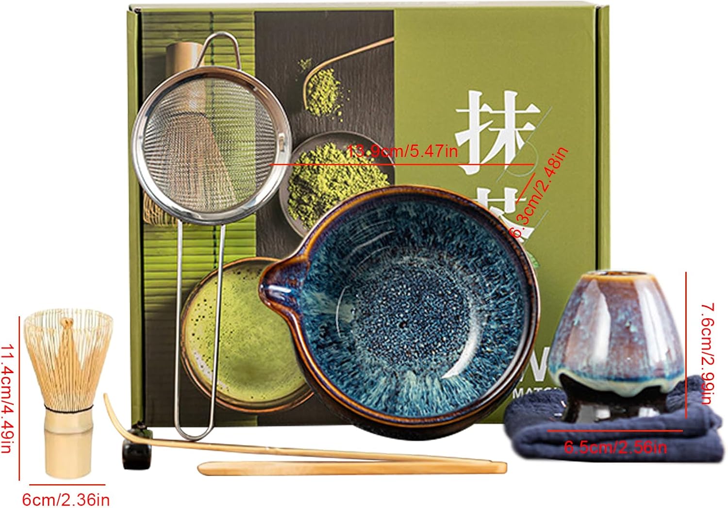 Product description A thoughtful creation for making enthusiasts this handmade whisk set resonates with tea lovers and wellness seekers. Ideal for yoga practitioners and home baristas it enhances tea ceremony sessions meditation preparation and fosters serene home relaxation experiences.Specification:Product name: Whisk SetProduct color: kiln-changed blue, kiln-changed blue-purple, kiln-changed purpleProduct size:Bowl (Jianshui): about 13.9x6.3cm/5.47x2.48 inches (capacity 450ml)Tea whisk stand: about 6.5x7.6cm/2.56x2.99 inchesTea whisk: about 6x11.4cm/2.36x4.49 inchesProduct weight: 0.8kg/setProduct material: ceramic, stainless steel, woodProduct List:1 * Tea Bowl1 * Tea Whisk Stand1 * Tea Whisk1 * Tea Scoop Holder1 * Tea Scoop1 * Stirring Spoon1 * Tea Towel1 * Tea StrainerNotes:Due to different lighting and screen settings, the product color may be slightly different from the picture.Due to the difference in manual measurement, please allow a 1-3cm difference in size. Manufacturer Contact Information Refer to description