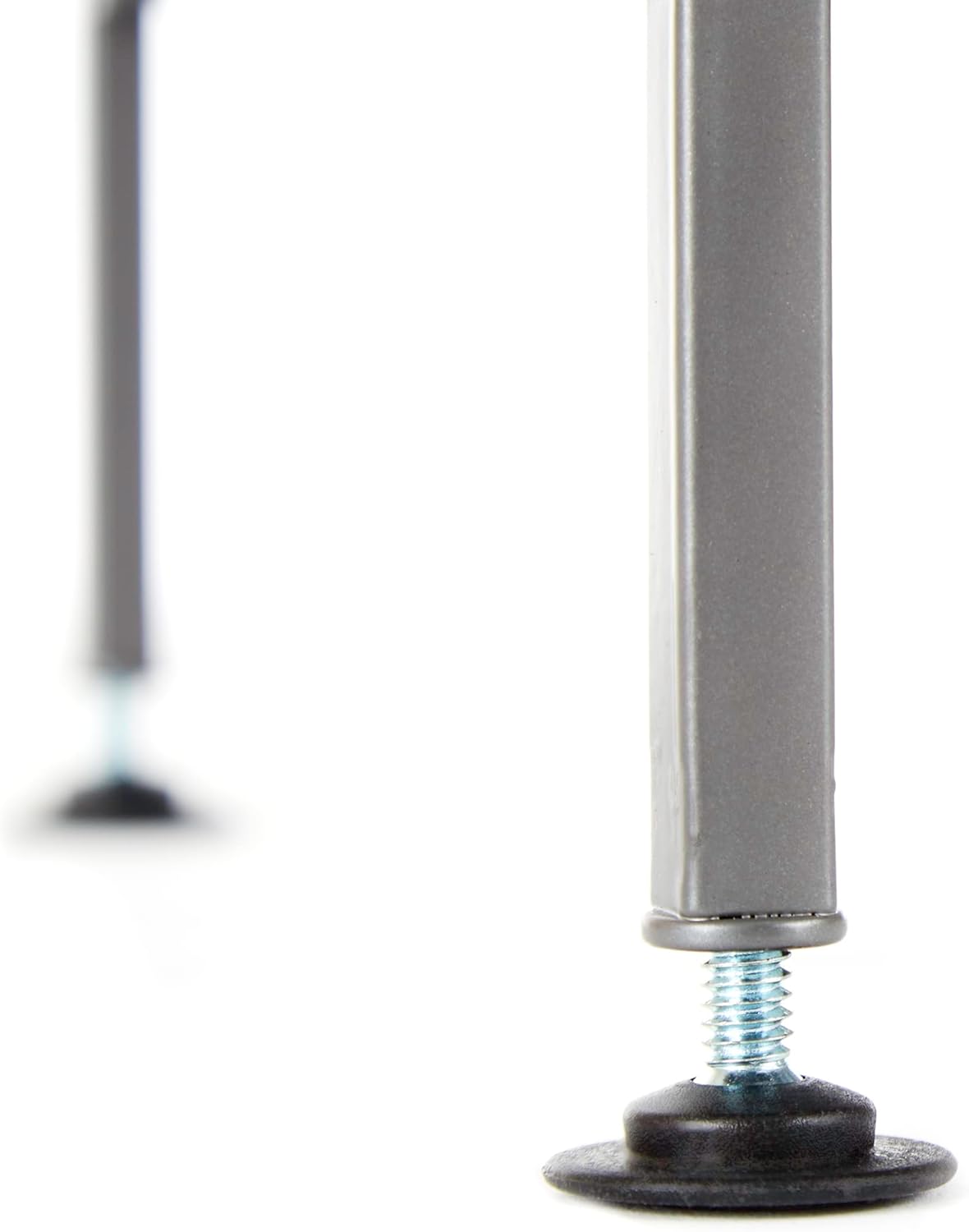 | Assembly Instructions Description | Assembly instructions are available. The product has a foldable steel frame that snaps together, requiring no tools. The instructions likely guide users through unfolding the frame, attaching the shelves, and securing the leveling feet. |