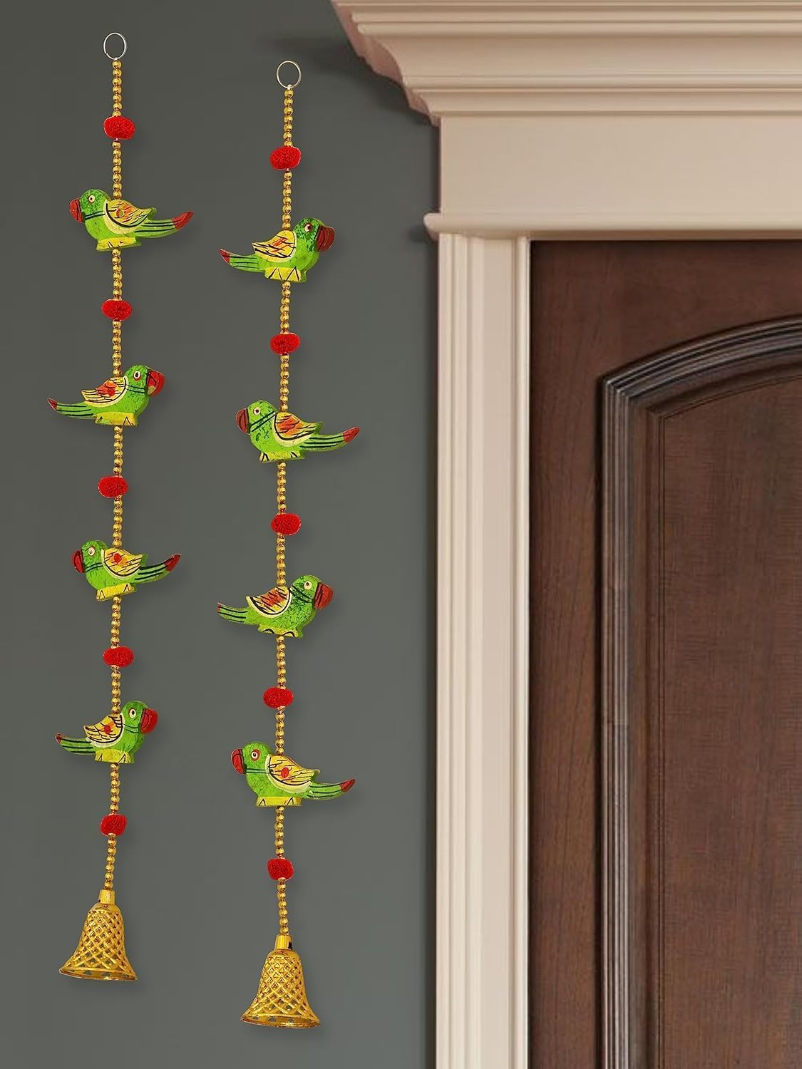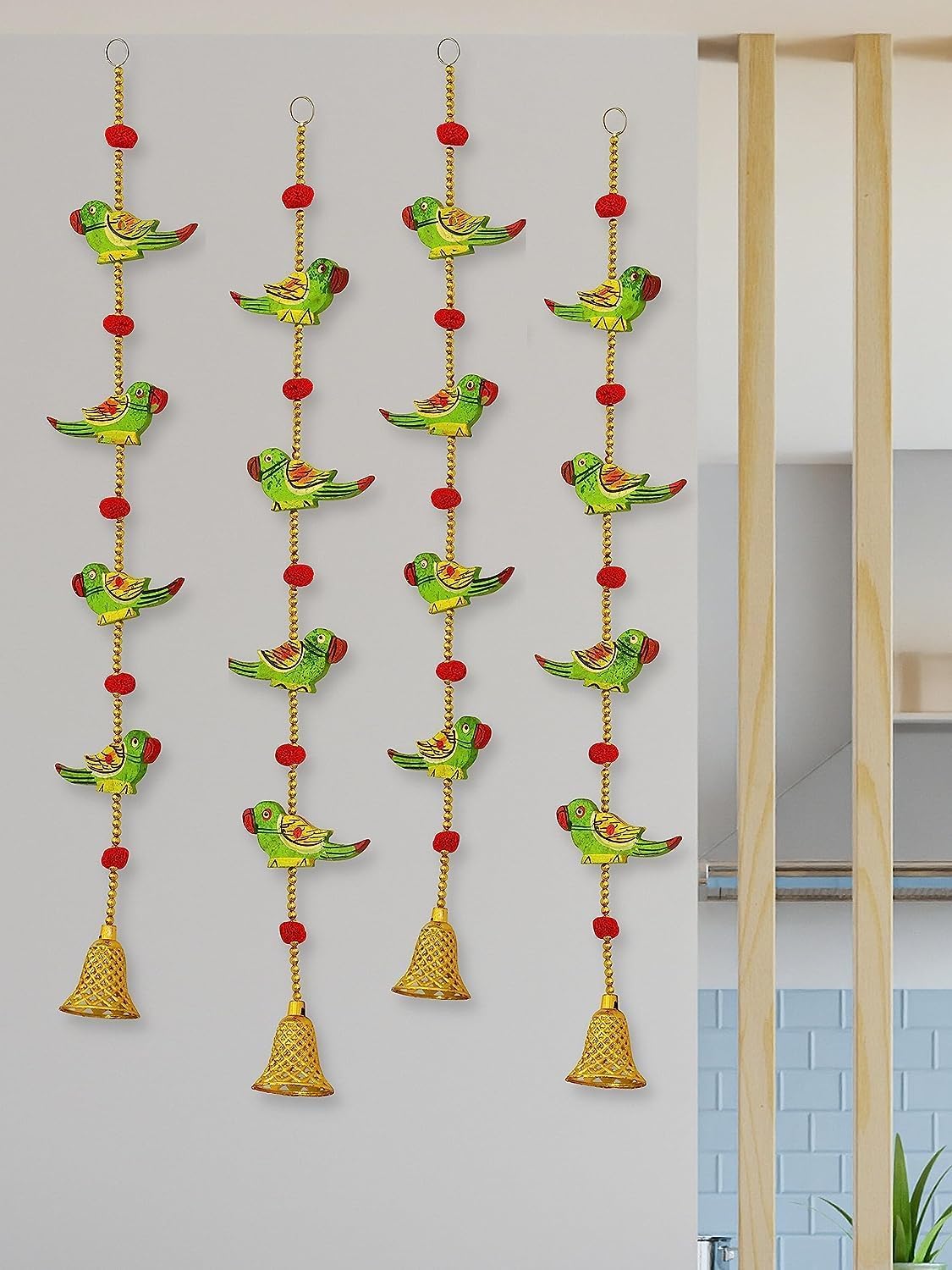 Embrace the vibrant charm of Shailja Enterprises Handmade Parrot Bells Decorative Lines Door Hanging Wall Hanging, a set of four meticulously crafted pieces designed to infuse your living space with artistic allure. These handcrafted door hangings blend traditional craftsmanship with contemporary elegance, creating a visual symphony that transcends ordinary decor. Transform your home into a sanctuary of handmade elegance with Shailja Enterprises Handmade Parrot Bells Decorative Lines Door Hanging Wall Hanging. Each piece is not just a door decoration; it's a work of art that tells a story of culture, tradition, and artistic expression. Embrace the uniqueness of these handcrafted door hangings and let them become a captivating focal point in your home. As the bells gently chime and the parrots dance with vibrant colors, you'll be transported to a realm where artistry and elegance harmonize to create a truly enchanting atmosphere.
