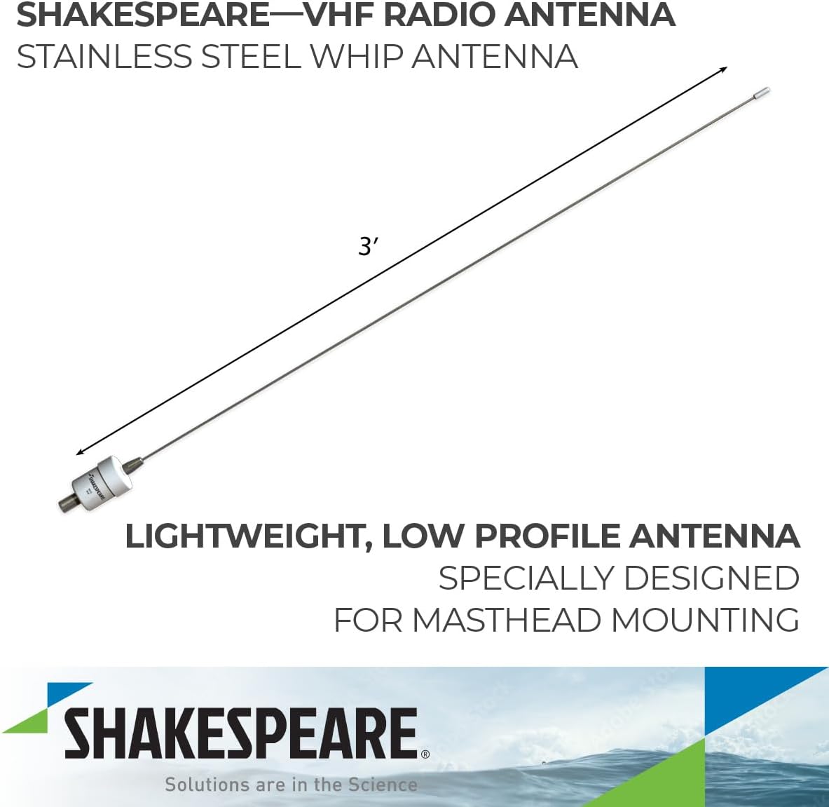 The Shakespeare 5215 3′ Stainless Steel Whip Antenna is a compact marine VHF communication antenna designed for reliable voice and weather communication on marine VHF radios.