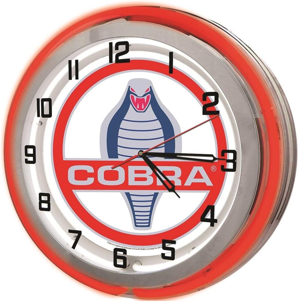 This brand new ready-to-hang neon clock makes a perfect addition to any garage, bar, game room or man cave! Our clocks are lit with two double neon tubes, one color for the outside and one bright white on the inside. Official Licensed Product by ELF Companies LLC.