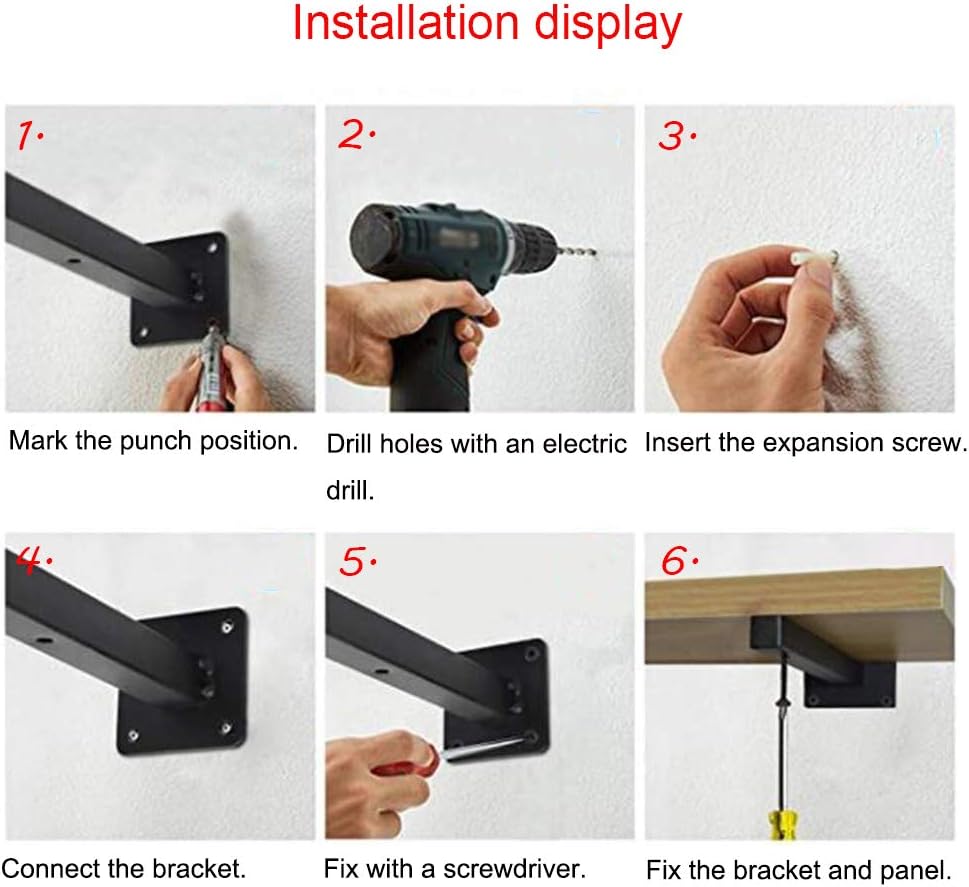 Product name: Wall Shelf Support Bracket Material:ironProcess: SprayingColor: Black/WhiteSize:150mm(5.9in),200mm(7.9in),250mm(9.8in),300mm(11.8in),350mm(13.8in),400mm(15.7in),Maximum load:50kgPackaging includes:bracketX2, Enough screwsInstallation:Screw fixingNote:1.This product does not contain a panel.2.Please keep dry and clean, long-term humidity will shorten the service life.3.Due to the use of different measuring tools, So there will be 1 to 3 mm error。4.Due to different displays, there will be color differences.(Prevail in kind)After sale: If you are not satisfied with the shelves brackets, Received a damaged or missing product,Please contact us in time.