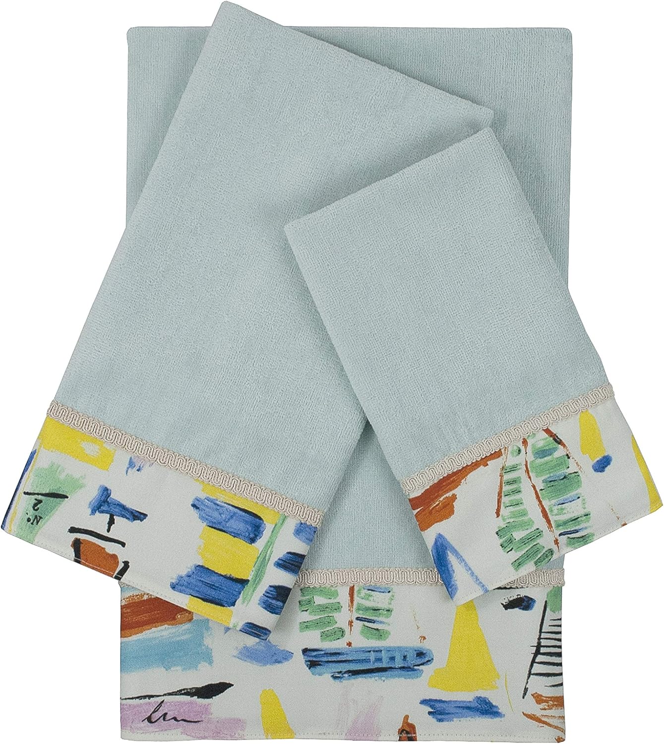 Express the appearance of your bathroom decor with these marvelous three-piece decorative towels from Sherry Kline. This appealing decorative towel set features a cotton bath, hand, and fingertip towel. These stunning towel set are embellished with quality craftsmanship. These exquisite towels are made with pure velour cotton. Add a stylish, personal touch to your bathroom interior design. Indulge your body with these soft gentle towels that soothe your skin, leaves you feeling calm and at peace. These different towel sizes cover you from head to toe. Each of these towels are made with precise and high-quality craftsmanship. This towel set is spot clean for convenient maintenance.