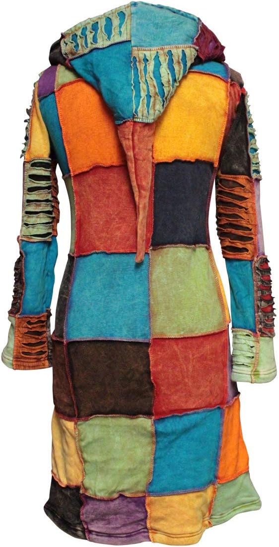 Clothing what we sell are handmade and You also can be sure that you won't be able to see the same range of products in the average high street. Well lined from inside ensuring to keep you nice and warm in chill weather.Ideal for autumn spring and winter. This pixie hooded jacket is Knee length Zips up With two side pockets. It is made from mix multi color artwork Fabrics. This jacket is embroidered in the shape of flowers or cross star or has a slashed detail with the second layer underneath in the front bottom part and is dark plain on the back side.Also razor cut can be found in the arms ,hood and neck which is really cool All these embroidery work, prints are hand done so each jacket produced is unique that is why sometimes these traditional symbols might be in different patchwork section than the photo uploaded .Slight variation in color and design reflects its unique origin. Measurement s:bust=32 inch, waist=30 inch,sleeves=20 inch, length =22 inch m:bust=34 inch, waist=32 inch, sleeves=20 inch, length=23 inch l:bust=38 inch, waist=35 inch, sleeves=20 inch, length=23 inch xl:bust=40 inch, waist=35 inch, sleeves=21 inch,length=23.5 inch 2xl:bust=42 inch, waist=37 inch, sleeves=22 inch,length=24 inch made from ribs cotton so this jacket easily stretches 1-2 inches easily Such a great and superb addition to your wardrobe and will get you noticed either in festival or chilling night outs or any other events.Plenty of time and a lot hard work has gone through to make this jacket really cool.