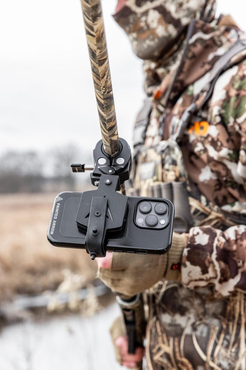 The Painted Arrow SHOT-MAG is the first magnetic smartphone mount for recording hunts on shotguns or rifles. It effectively helps hunters analyze their shot placement and relive their experiences. This mount combines a powerful magnetic system with a rubber security strap to keep your phone secure. It fits any gun barrel diameter using an adjustable clamp, and includes multiple rubber saddles to prevent rubbing and provide shock absorption. The Painted Arrow SHOT-MAG is an affordable, easy-to-use filming method that enhances hunting experiences.