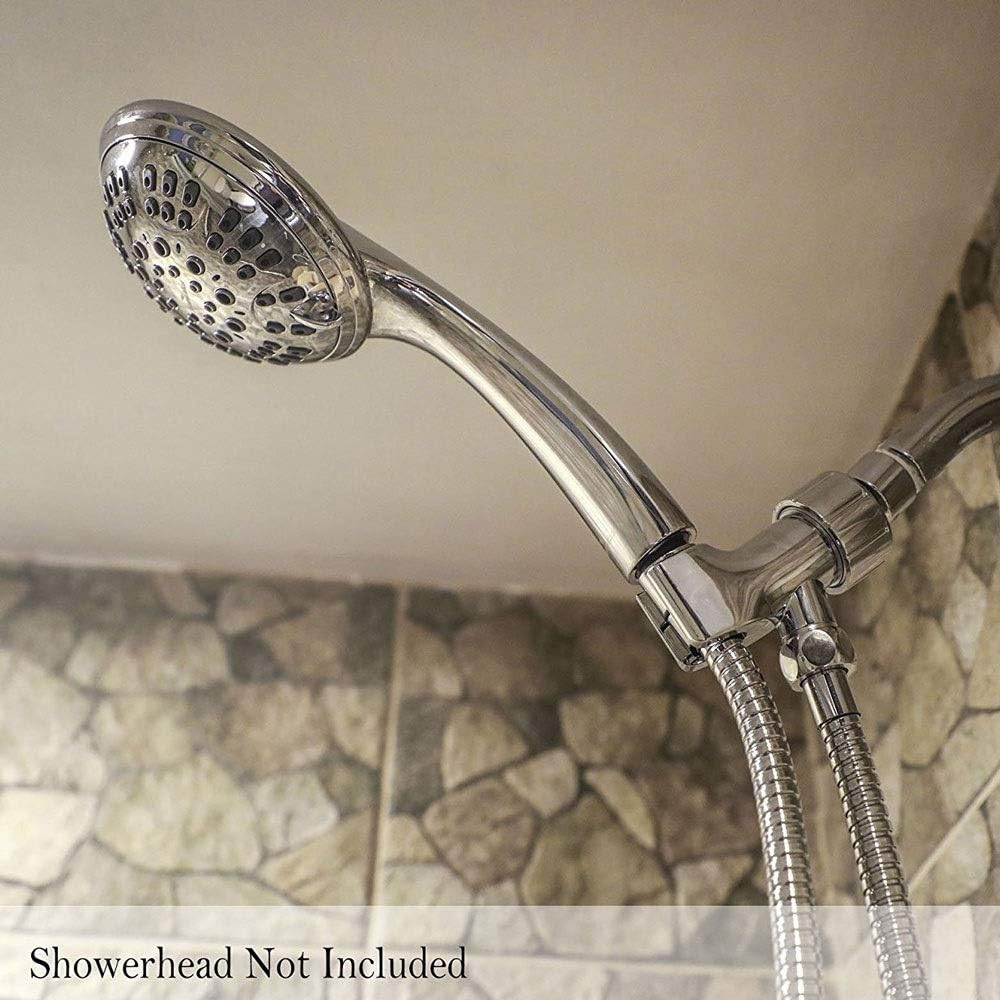 Premium grade ABS with brass inlet and swivel ball joint.Universal ?" male/female outlet/inlet.Custom cone washer inside swivel joint for a firm grip.Large adjustable nut with groves can easily be adjusted to any angle even with wet soapy hands.Waterproof, polished chrome finish will not rust, corrode or become dull.You can adjust the angle according to your preferences to make the shower more free