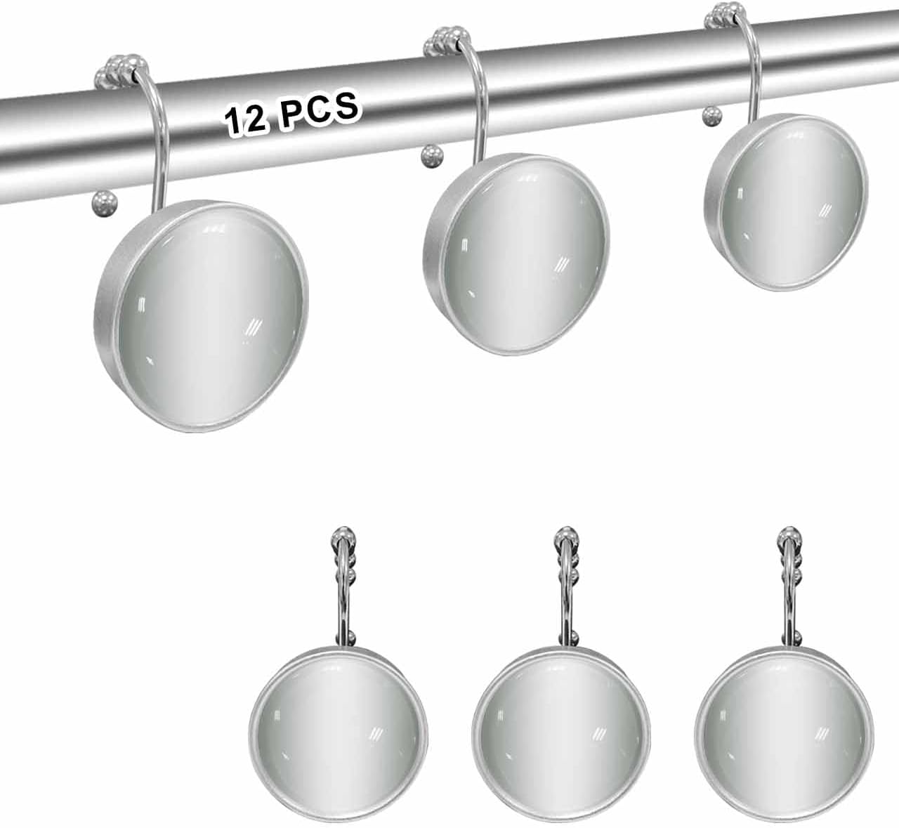 12PCS/SET Shower Curtain Hooks for Bathroom, Decorative Shower Curtain Hooks with beautiful and unique looking! Our shower curtain hooks come in many patterns, such as: geometric, vintage, ocean, gnome, sunflower, animal, plant, floral, plaid, cartoon, space, summer, autumn, winter, spring, Christmas theme, Easter theme, etc. Whether it's a modern or vintage bathroom, apartment or farmhouse bathroom, find the matching style in our store. Stainless Steel Rust Proof Shower Hooks for Bathroom Curtains Our Shower Curtain Hooks are made of 304 stainless steel and with plating surface, with 5 glide Balls, round crystal glass with resin peripheral design, they can roll easily back-and-forth across the shower rod, not stick and smooth roll. Rust-resistant, Not Easy to Fade, Strong and Stylish.These qualities save you the hassle of frequently buying shower curtain hooks, and trust us, you won't be disappointed when you replace the plastic hooks. Package Contents: Set of 12 Shower Curtain Hangers, comes in a transparent box packaging make sure with no missing parts. These bathroom shower curtain hangers are suitable for hanging rods up to 0.94"" / 24mm in diameter. If you have any problem, please feel free to contact us.