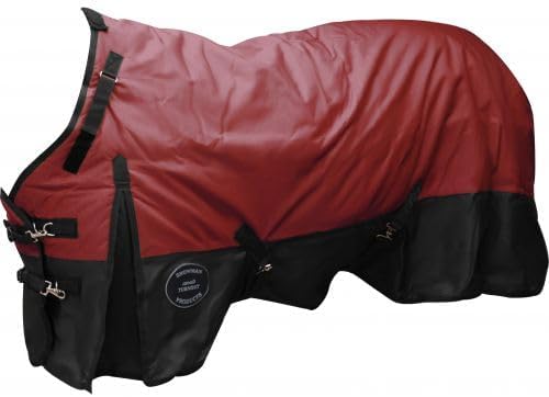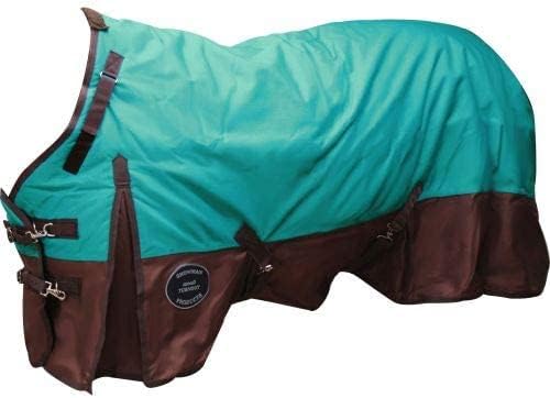 Showman Perfect Fit 1200 Denier Waterproof & Breathable Turnout Blanket. This turnout blanket features 1200 Denier outer shell with a 70 Denier ripstop lining and 300 gram polyester filler. Waterproof and breathable material with fleece wither protection. Secure with the perfect fit this blanket has loop and velcro neck cinch on both sides. Open front with two nylon buckles with swivel claw snaps for quick and sure fit closure. Double surcingle belly and back leg straps and tail cover. Shoulder and flank gussets with a contoured shape. Available Colors: Teal, Purple, Burgundy & Blue. Available Sizes: 68" to 82". For an average full size horse.