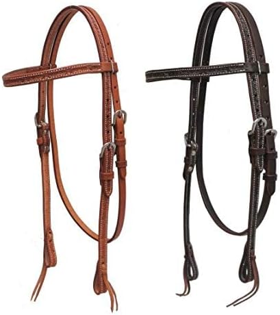 Showman Argentina cow leather headstall with barbed wire tooling. This headstall features double stitched Argentina cow leather with a tooled barb wire design with stainless steel hardware.