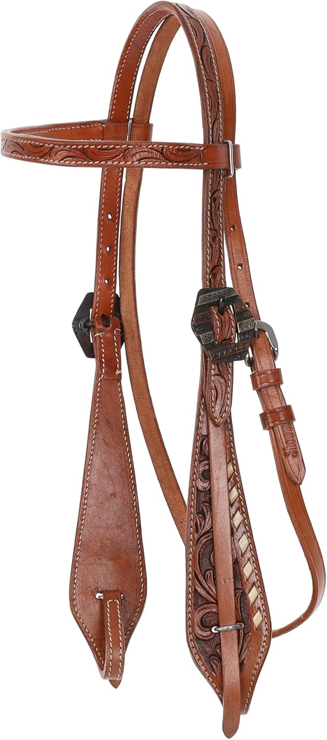 The Showman Summerfield Browband Headstall and Breast Collar Set is the perfect blend of elegance and practicality for the modern equestrian! Crafted from medium leather, this set features exquisite floral and leaf tooling that adds a touch of artistry to your horse’s gear. The beautiful detailing reflects traditional craftsmanship while giving a nod to contemporary style, making it a fantastic choice for both competition and casual riding. With this headstall and breast collar set, you can confidently strut into the arena, knowing your horse looks absolutely fabulous!One of the standout features of this set is the dual adjustable cheeks, which allow for a customizable fit tailored to your horse's unique shape. The square antiqued copper bar buckles not only enhance the set's aesthetic appeal but also provide added durability for those long days at the barn. Plus, the quick release leather bit connection offers effortless convenience for busy riders. Whether you’re switching out bits for different disciplines or simply need to get your horse tacked up quickly, this feature makes your life a whole lot easier, allowing you to focus on the ride rather than the fuss.Completing this stunning ensemble, the Showman Set comes with matching reins, ensuring a cohesive look that’s perfect for any riding occasion. From a leisurely trail ride to a competitive show, this set combines functionality with a splash of flair that is sure to impress. With its thoughtful design and attention to detail, the Summerfield set not only enhances your horse's appearance but also elevates your riding experience. Get ready to saddle up and create unforgettable memories with your equine partner, all while looking your absolute best!