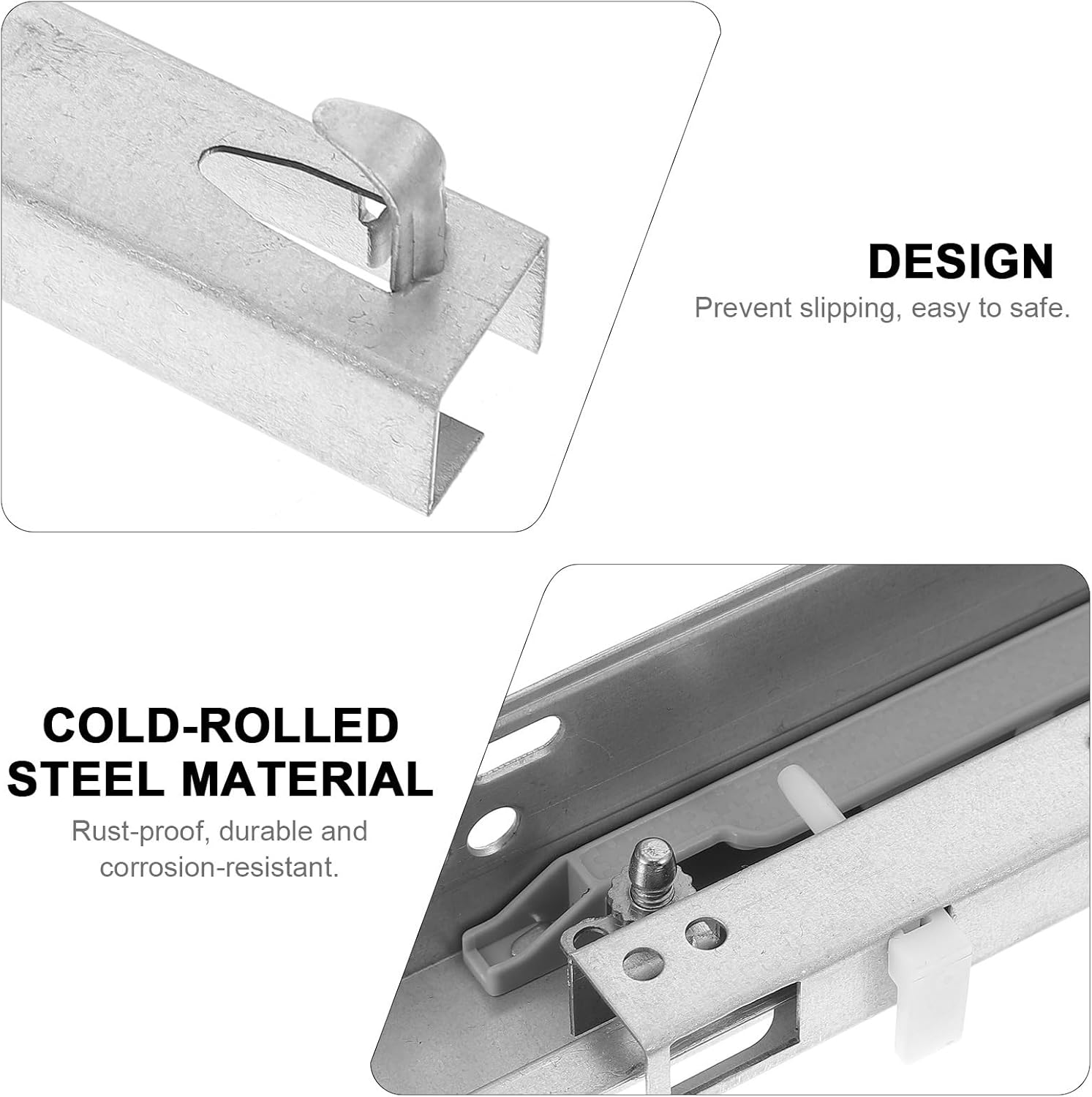 1. Concealed drawer slides give your drawers a clean and aesthetically pleasing look while maintaining practicality.2. We offer a variety of drawer slide sizes to meet different size and usage needs.3. Suitable for kitchens, studies, pantry, and other storage spaces.DescriptionThis is a useful drawer slide, made of sturdy and durable cold rolled steel material, which can serve you well. Made with exquisite craftsmanship, it has strong load-bearing capacity, is not easy to fall off, and is more smooth to use.Features-Color: Silver.-Material: Cold-rolled steel.-Size: About 41.50X4.20X4.00cm/16.31X1.65X1.57in.- The concealed drawer glides are rated for heavy-duty use, featuring soft-close functionality.- These drawer slides are compatible with most drawer and cabinet types, with wide compatibility.- Damping buffer, slowly closed, to achieve the mute effect, giving you a quiet and comfortable environment.- Lock slide, avoid drawer automatically open, drawing smooth, strong balance, open and close quietly.2 x Drawer Slides