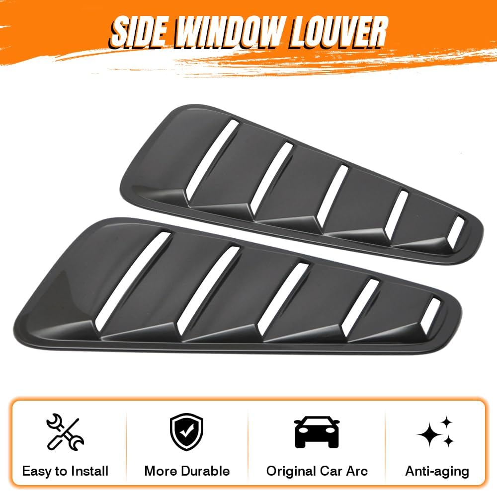 Team MODILOVER designed this air vent scoop cover louver to be functional and durable, with the curvature of each window louver vent carefully engineered to produce a compact, smooth appearance and a curvature that complements the window. Protects against UV radiation from fading your precious interior, also keeps your cabin temperature at a much cooler level. MODILOVER Window Scoop Cover Vent is a great addition to any drive! Compatibility: Fits 2005-2009 Ford Mustang V6 Coupe (Not Fit Convertible!) Specification: Material: Polypropylene(PP) Color: Unpainted Black Package includes:1x Pair of Side Window Scoop Louvers MODILOVER Air Vent Scoop Shades Blinds Cover Designed to Enhance you Drive Experience! Feature: Superior fitment and quality; Light weight; Impact resistance; Easy installation Function: Upgrade look; Reduce interior temperature; Add privacy; Block UV rays