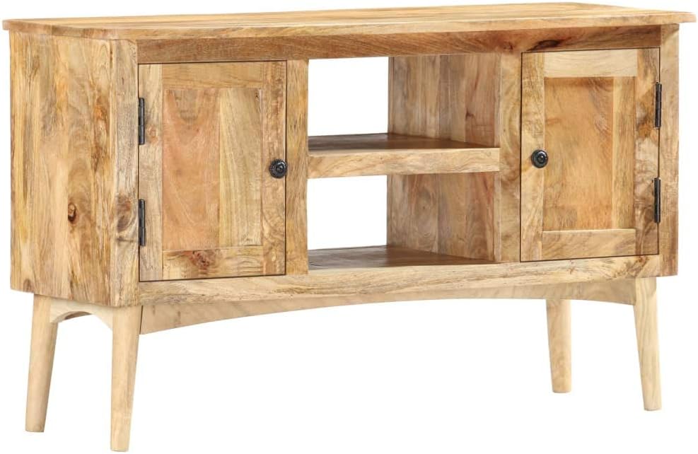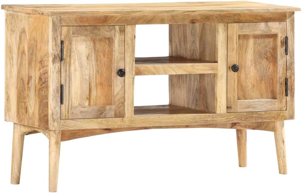 This rustic wooden sideboard exudes a vintage charm and will make a great addition to your interior.The side cabinet is made of solid mango wood that has been polished and lacquered but still has its natural color and a rough look. Mango wood is a dense and robust hardwood which has beautiful brown or golden streaks and contours on its surface. The beautiful wood grains make every piece of furniture unique and slightly different from the next. The sideboard has a sturdy and stable surface, on which you can place fruit baskets, vases or other decorative items. 2 doors and 2 open compartments provides extra storage space. Assembly is easy.Important note: The colors vary from piece to piece, making each piece unique; the delivery is random.Material: Solid mango woodDimensions: 39.4" x 13.8" x 23.6" (W x D x H)Polished and lacqueredWith 2 doors and 2 open compartmentsAssembly required: Yes