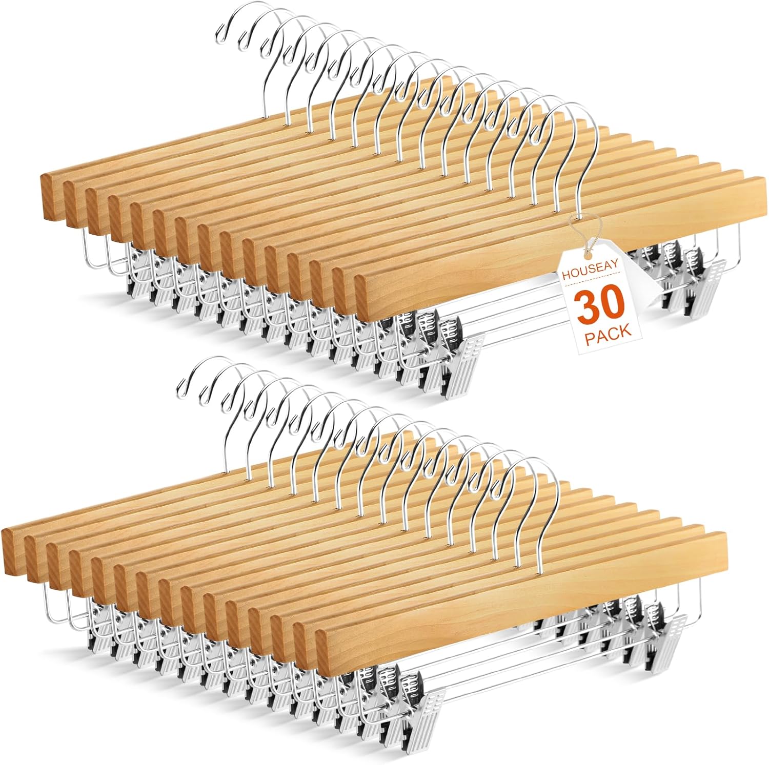 Features: Proper size: Each of the heavy duty clip hangers measures approx. 17.13 x 10.83 x 0.4 inches, appropriate for most occasions. What's more, the clips can slide along the bar to hold the different clothing of adults. Thoughtful gifts: The silver and burlywood colors make the skirt hangers for women classic and elegant in appearance, which can be well integrated into different furniture styles. Therefore, you can also share them with your family or friends. Specifications: Main material: eucalyptus wood and metalMain color: burlywoodSize: approx. 17.13 x 10.83 x 0.4 inchesPackage includes: 30 x Skirt hangers with metal clipsNotes: Manual measurement, please allow slight errors on size. The color may exist a slight difference due to different screen displays.
