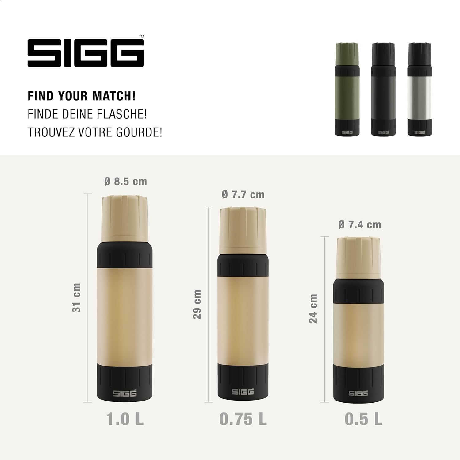 SIGG is a leading brand in reusable water bottles, coffee mugs to go and lightweight lunch boxes. The Swiss company is proud to be known as the manufacturer of probably the most elegant, practical and sustainable drinking companion for on the go, available in various sizes, materials and shapes: aluminium, 18/8 stainless steel, glass, insulated, lightweight, equipped with innovative caps, large or small... The company's history goes back to 1908 and the love of its well-traveled founder for metal, as well as his belief that aluminium is the material of the future. In the 1960s, the iconic Traveller bottle was launched and paved the way for an ever-expanding range of water bottles and thermal cups. Trendy, innovative and environmentally friendly. Over the years, the Swiss company has increased emphasis on design development and has set itself the goal of producing the highest quality drinking bottles that meet the needs of both city people and nature lovers alike. After all, every adventurer, even so young, deserves a harmless water bottle that meets his requirements. Whether on hikes or in the office. When camping or at home! At school or on the playground! Enjoy the good feeling of knowing that by buying a SIGG bottle or tumbler cup, you are helping to avoid disposable waste. The ideal drinking companion, practical and sustainable at the same time, for years of perfect drinking enjoyment.