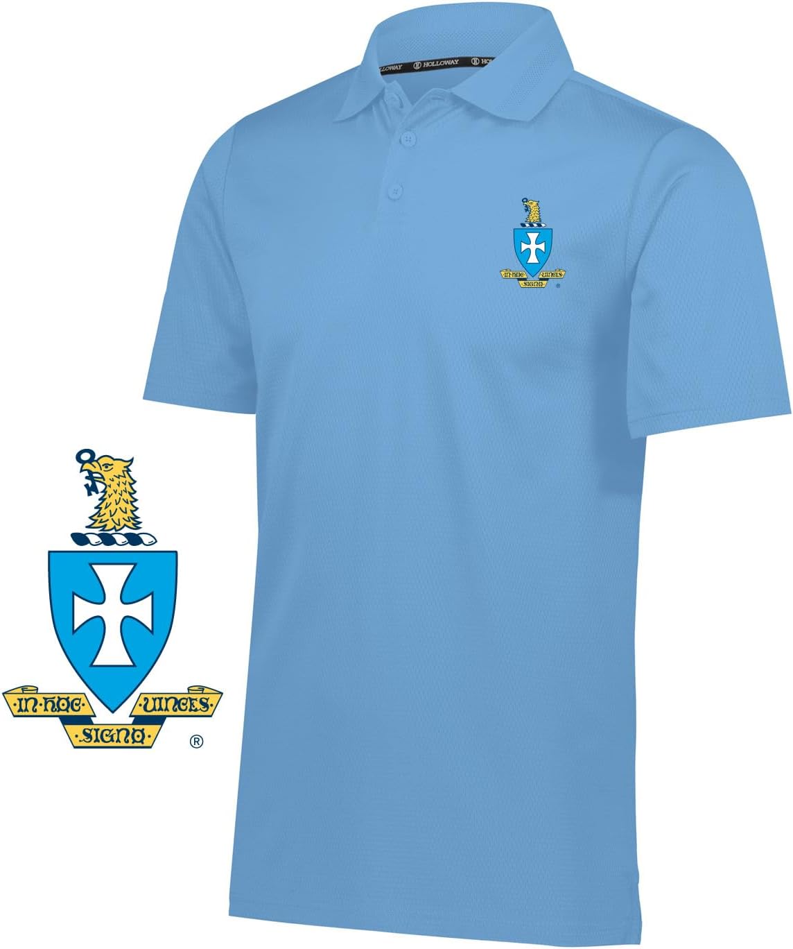 Sigma Chi Greek Crest Emblem Defer Polo. Dry-Excel, 4.1 ounce 100% wicking polyester grid mesh yokes with true hue technology that helps prevent dye migration Wicks moisture. Contrast color piping on front and back mesh yokes Set-in sleeves. Polyester.