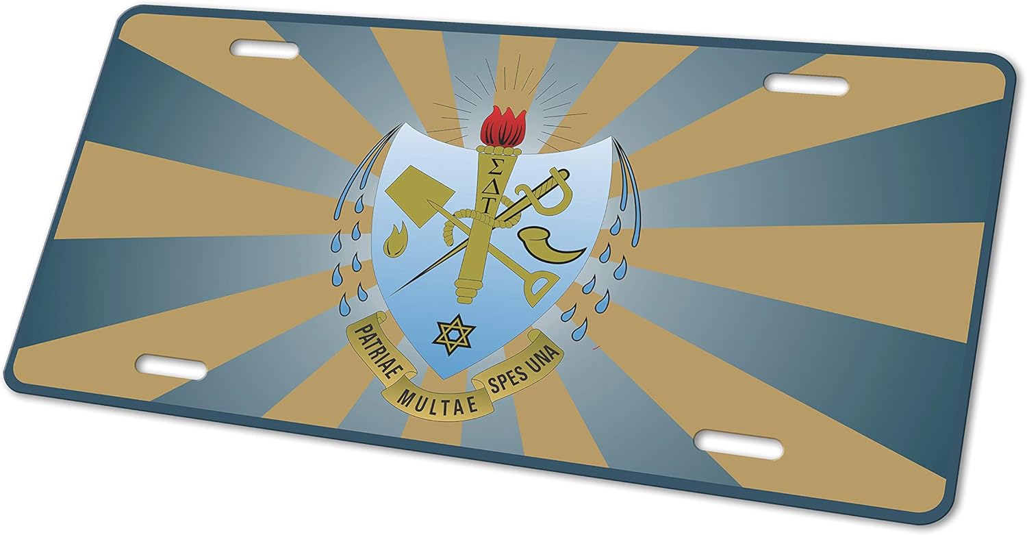 PERFECT FOR INDOOR AND OUTDOOR USE: Represent your love of the Sigma Delta Tau on your RV, automobile, garage, or home. PREMIUM QUALITY MATERIAL: custom made license plate is made from high-quality aluminum. DIMENSIONS: The license plate measures 12” H x 6” W and comes with four pre-drilled holes for convenient mounting. IMPECCABLE GRAPHICS: license plate is designed with flawless graphics along with the logo, motto, and the name of Sigma Delta Tau. PERFECT GIFT/ACCESSORY: this Sigma Delta Tau license plate makes the perfect souvenir for your friends and family.