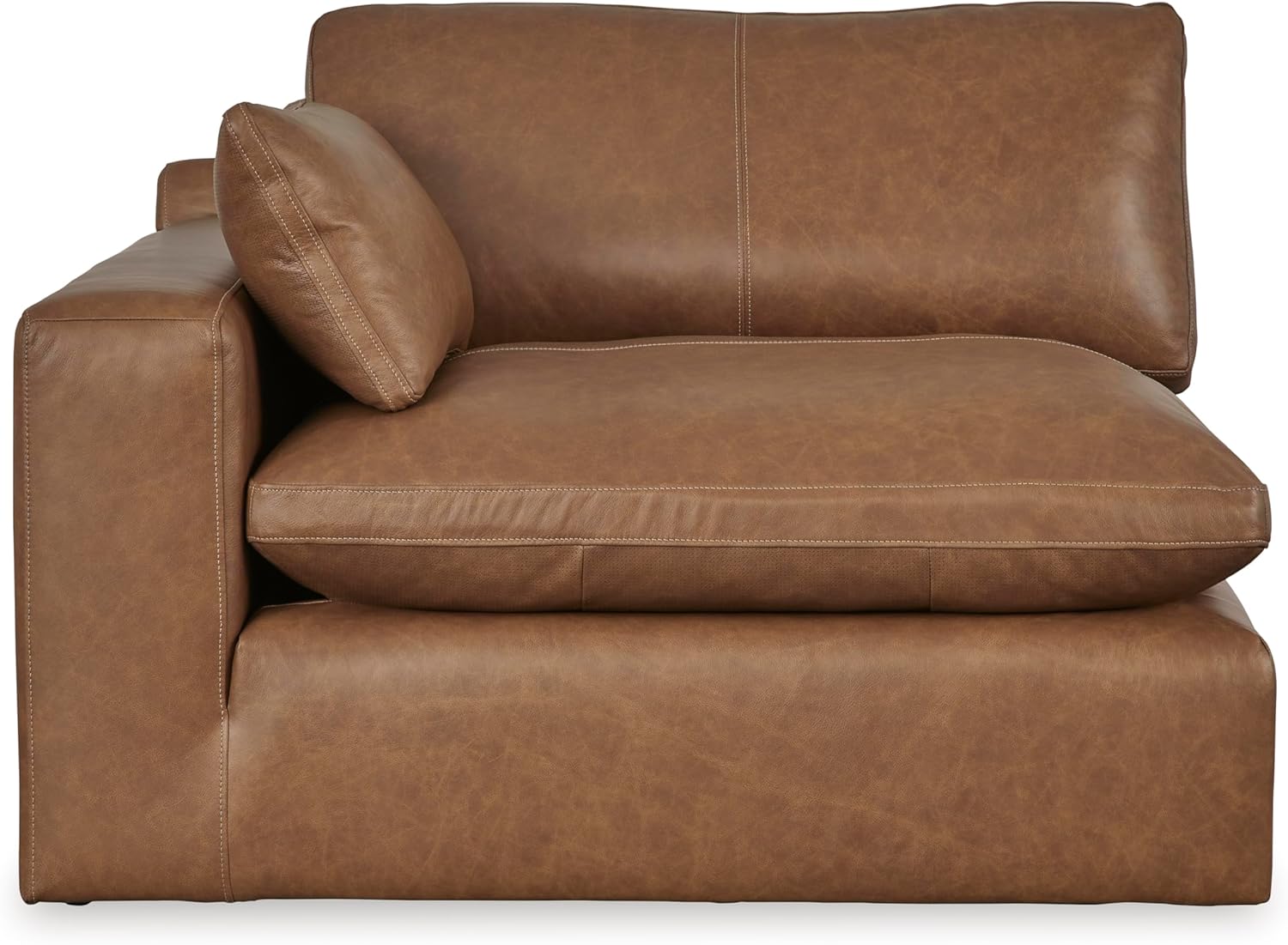 Catering to your contemporary lifestyle, this sectional sofa is a handsome marriage of masculine and feminine sensibilities. Feather-fiber cushions and bolster pillows soften the look of its chunky, linear silhouette. A warmly hued combination of leather and faux leather upholstery levels up the affordable luxury. And you'll never run out of ways to stage this seating arrangement—each piece is fully finished on all sides and capable of standing solo. Urban sophistication has never been more versatile.