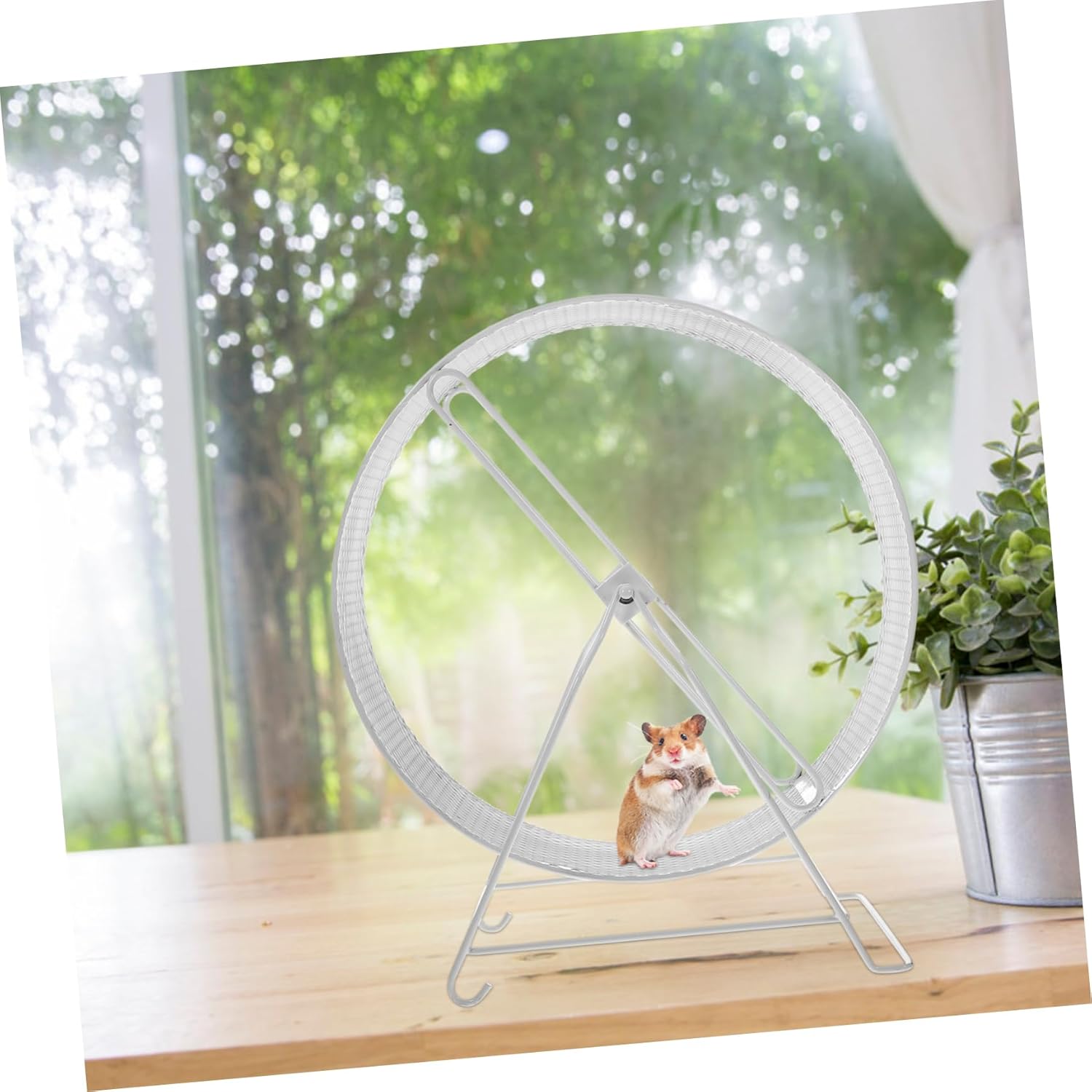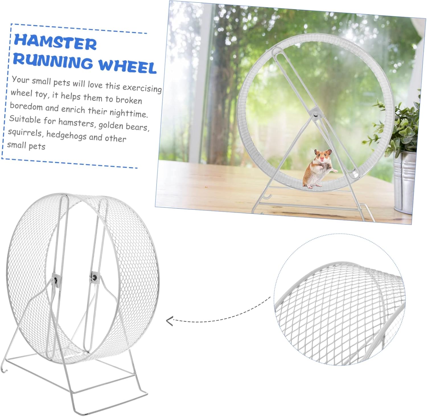 Package Include 1 x hamster exercise wheel with bracket Characteristics -Material: Iron chinchilla wheel large. -Your pet can run at night without disturbing others, and your pet won't get hurt or sprained when running mice running wheel. -The reasonable size of the running wheel brings your hamster a comfortable running feeling mouse toy. -Made of high-grade iron material, it is sturdy and durable and guinea pig. -Suitable for hamsters, , squirrels, hedgehogs and other small pets hamster wherl. -Fun to play and run, keep them to exercise for maintaining their strength and well-being squirrel playing wheel.Goods Descriptionmouse wheel Your small pets will love this exercising wheel toy, it helps them to broken boredom and enrich their nighttime.small pet running wheel This is an interesting hamster exercising wheel toy, it will bring your little hamster endless running fun, also bring you a quiet night even if your hamster on the to run and hamster wheel is