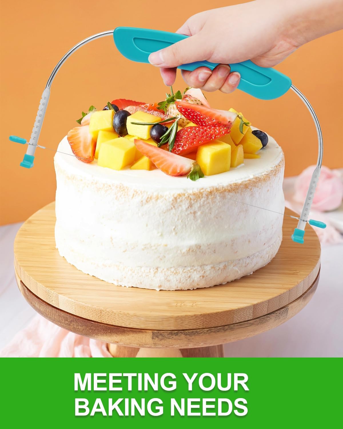 This combination contains 1pack silicone rolling pin with thickness rings and 1pack sea blue cake slicer leveler 2-wire