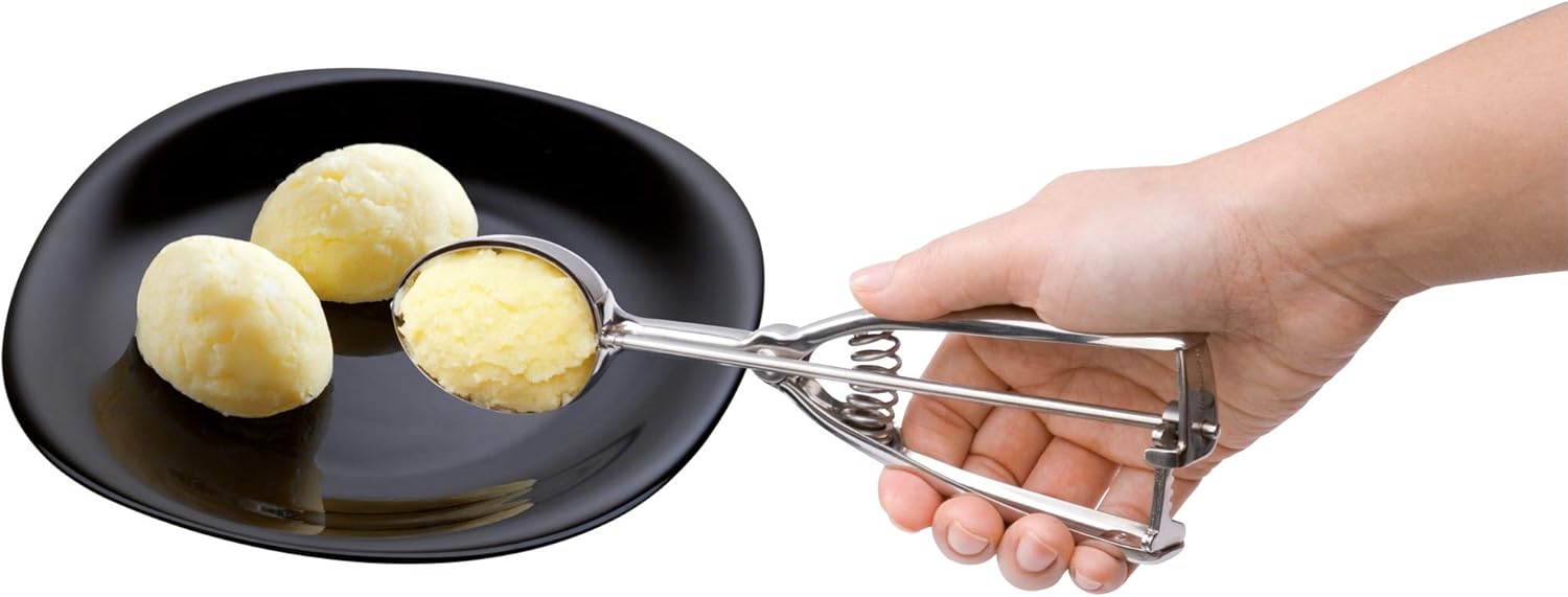 Oval ice cream scoop kitchen tools: functional and stable. Oval shape. Used for ice cream, rice and mashed potatoes. Hygienic and dishwasher-safe.