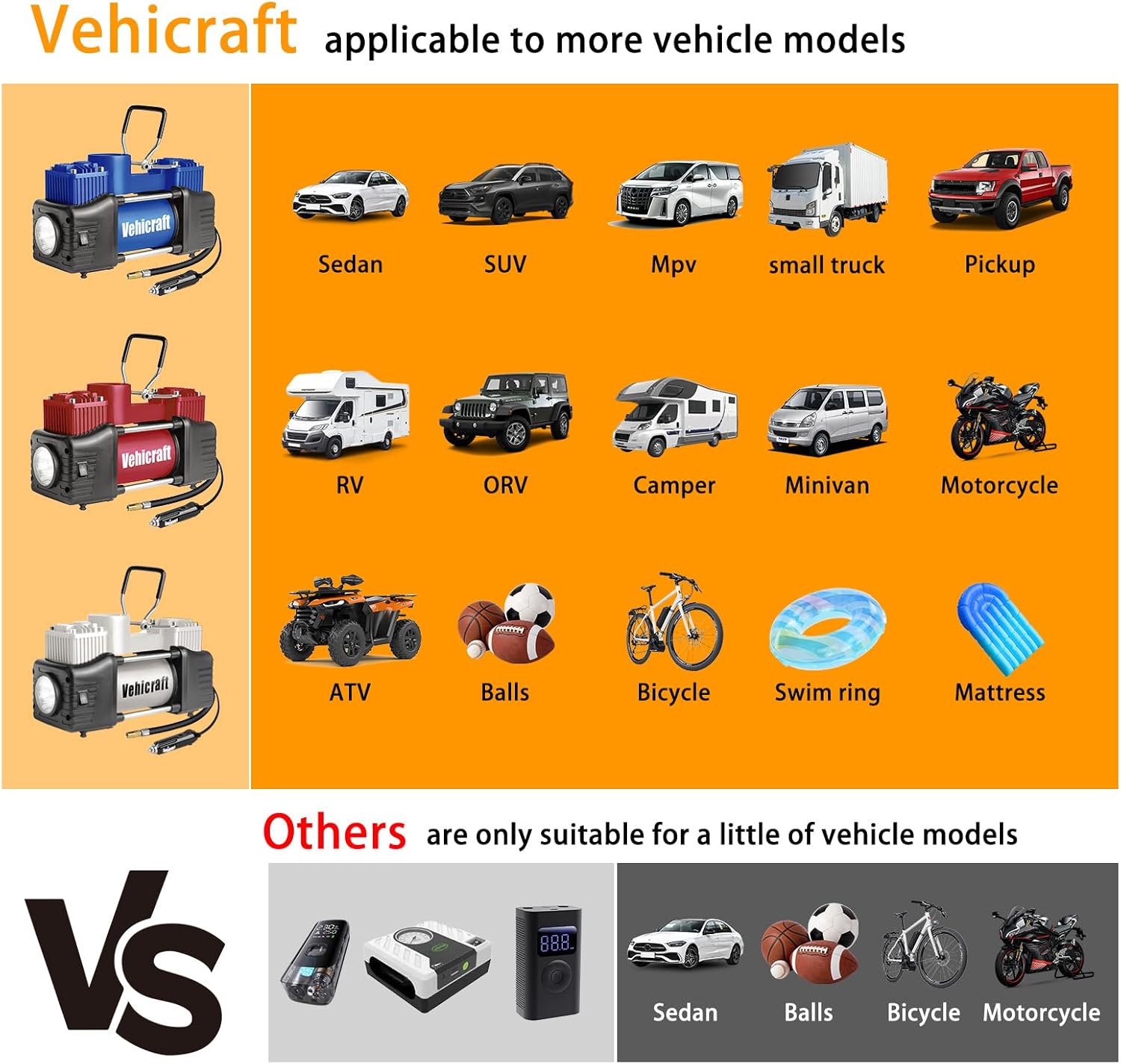 | Additional Features | Double Cylinder, Lightweight, Mini tire inflator, Portable, Quick Inflation |