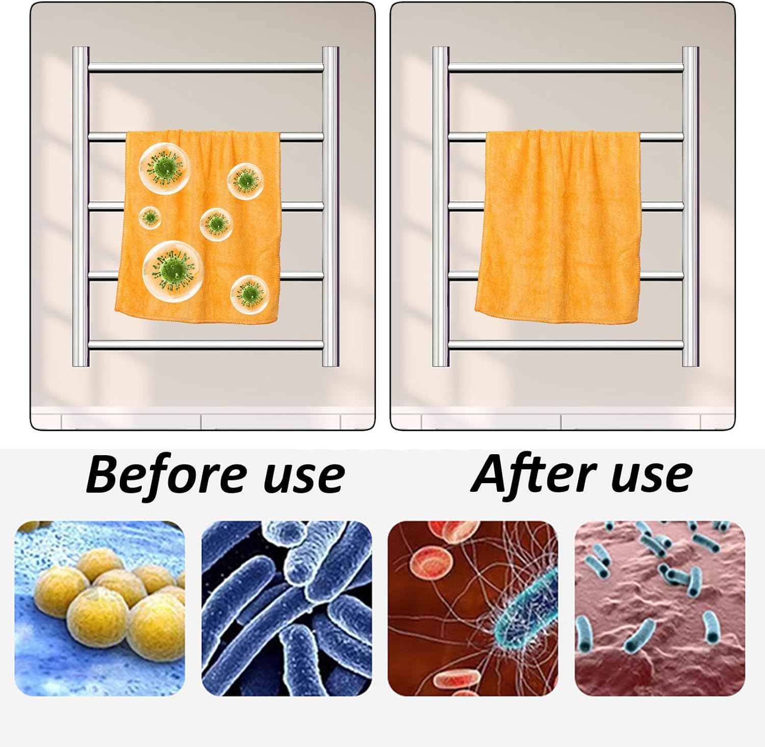 Experience the luxury of warm, dry towels with our Electric Towel Rack, featuring 5 sleek, mirror-polished rods designed to enhance your bathroom or any other space. Crafted from high-quality stainless steel, this electric heated towel rack not only complements your modern decor but also provides a functional solution for drying towels efficiently. Its stylish silver finish adds a touch of elegance, making it perfect for bathrooms, kitchens, balconies, toilets, swimming pools, hotels, and other areas where moisture is a concern.Imagine stepping out of the shower to a cozy, warm towel waiting for you, transforming your daily routine into a spa-like experience. This versatile towel warmer is designed for easy installation and use, ensuring you can enjoy the benefits without hassle. It’s not just a towel dryer; it’s a multi-functional storage rack that keeps your towels organized and ready for use. The thoughtful design maximizes space while providing a practical solution for drying and storing towels in any setting.Upgrade your home with this electric towel rack, which is ideal for anyone looking to enhance their living space with convenience and style. Whether you’re drying bath towels after a long soak or keeping kitchen towels warm for your culinary adventures, this product delivers reliable performance. Please note that size may vary slightly due to manual measurement, and actual colors may differ based on monitor settings and lighting.