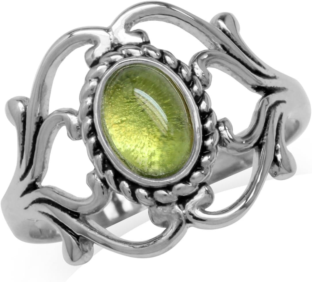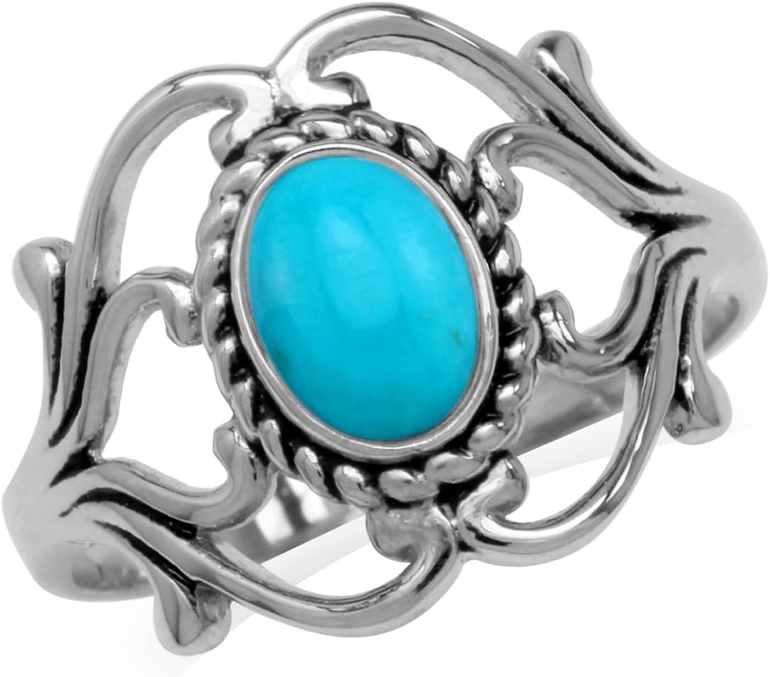 Silvershake Bezel Set Cabochon Gemstone Surrounded by Twisted Rope White Gold Plated 925 Sterling Silver Victorian Style Ring