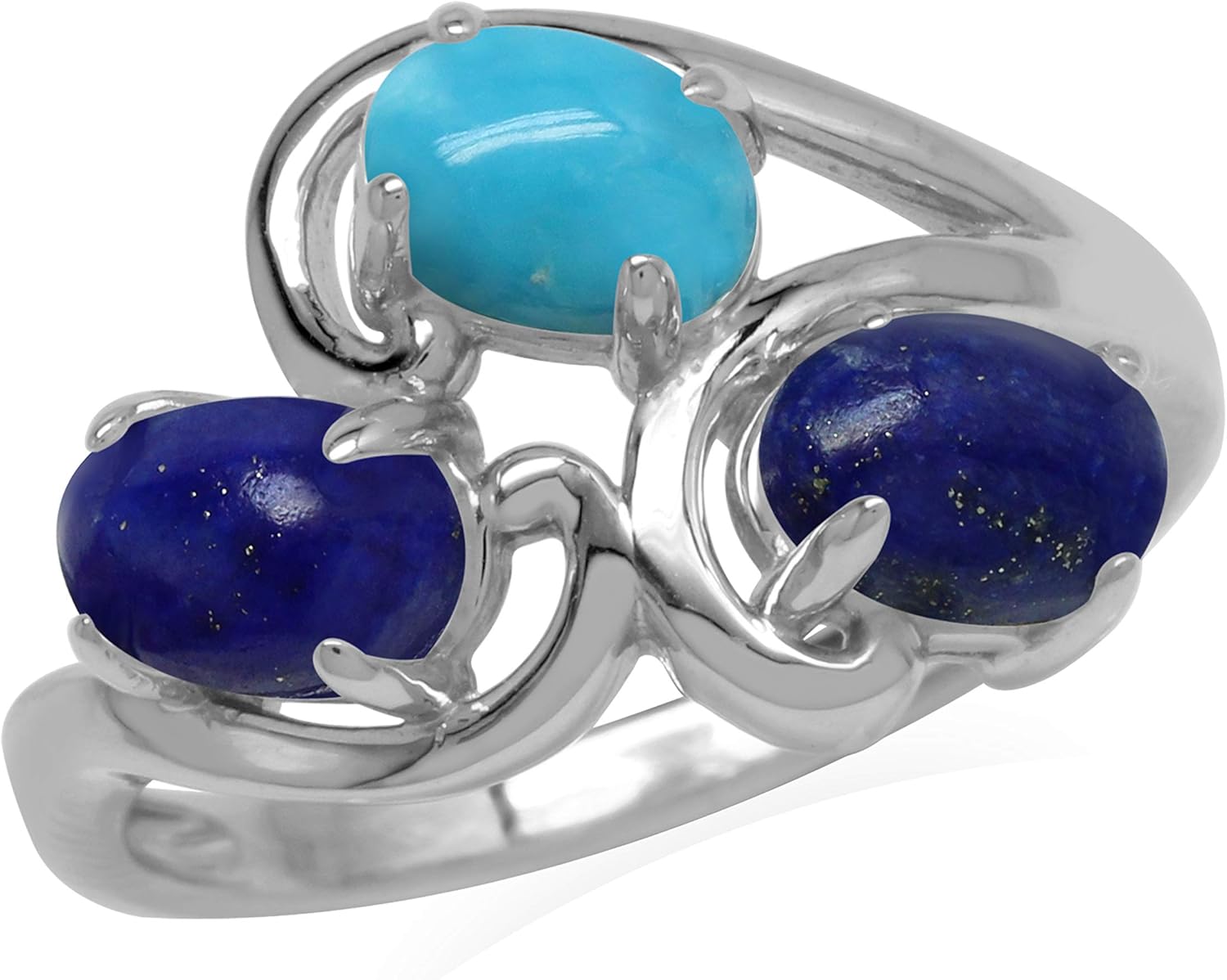Silvershake Genuine Cabochon Stones 925 Sterling Silver 3-Stone Cluster Right Hand Ring Jewelry for Women
