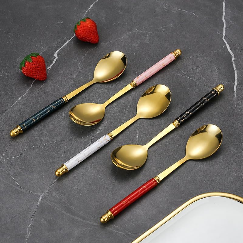 Material: Stainless steelApplicable objects: AdultsStyle: modern simplePolishing process: water polishing (machine polishing)Product Category: SpoonColor: Round spoon with pattern handle [white gold]Color: Round spoon with pattern handle [pink gold]Color: Round spoon with pattern handle [black gold]Color: Round spoon with pattern handle [red gold]Color: Round spoon with pattern handle [green gold]Product quality level: first-class productStyle type: simple style.About our BrandOur brand is GOODJAYVEN. We have always been committed to Household items. Do our best to bring more creative products to our customers.