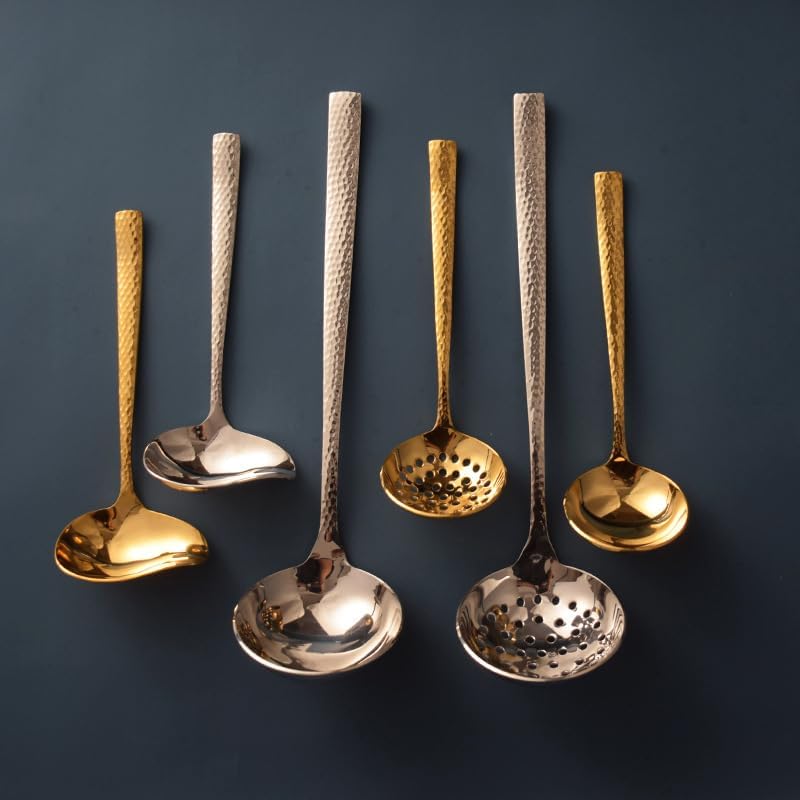 Silverware Flatware Set, 1/4/6/8/10/12 Pcs 304 Stainless Steel Large Soup Shell Hot Pot Colander Household Large Spoon Long Handle Colander(Gold,4 Pieces)