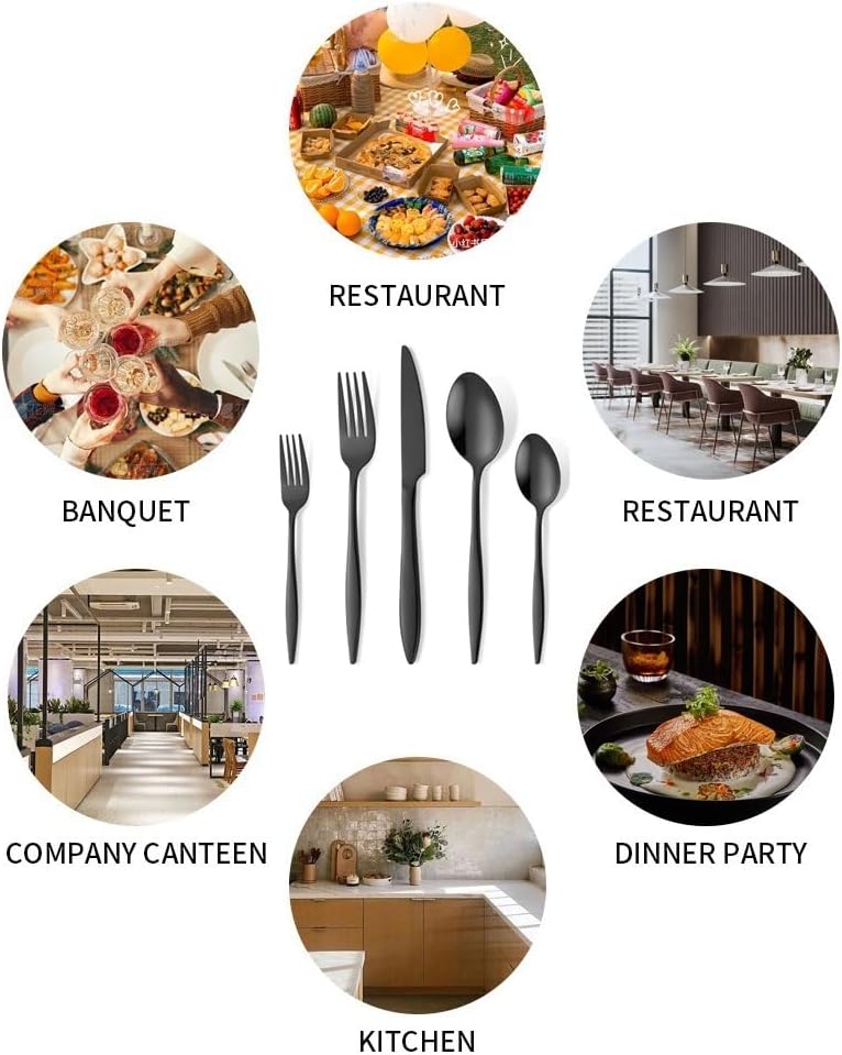 Material: 430 stainless steelPolishing process: Cloth polishing (mirror polishing)Set list: 5 table knives, 5 table forks, 5 table spoons, 5 dessert spoons, 5 dessert forksStyle: modern simpleStainless steel material: 430 stainless steelSpecifications: Silver 20-piece setSpecifications: Gold 20-piece setSpecifications: Rose gold 20-piece setSpecifications: Rainbow 20-piece setSpecifications: Black 20-piece setProduct quality level: first-class productStyle type: simple styleProduct category: Knife, fork and spoon set.About our BrandOur brand is GOODJAYVEN. We have always been committed to Household items. Do our best to bring more creative products to our customers.