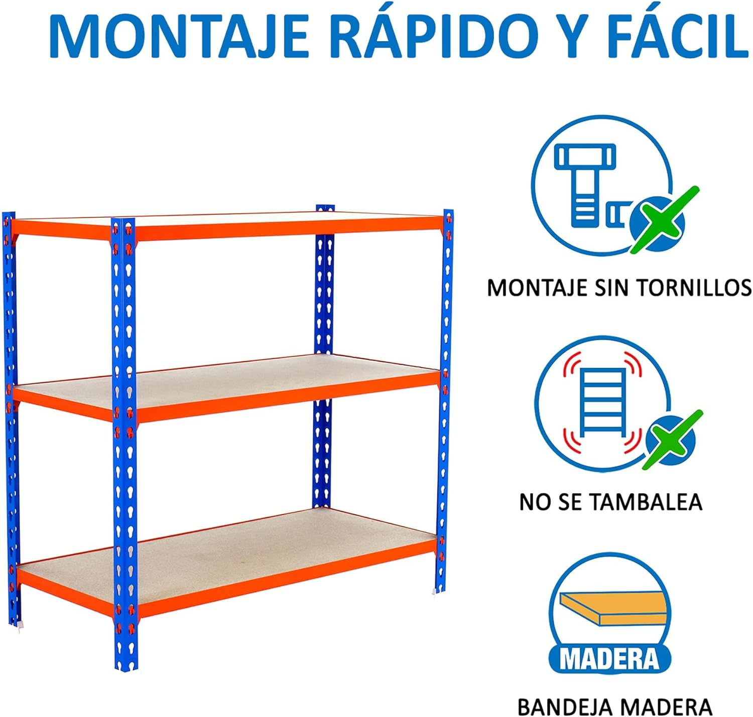 METAL SHELVING STORAGE - With the SimonRack screwless metal shelving unit create your space with its easier and faster mounting system. Wooden shelves for better aesthetics. They can be combined and assembled at different heights. Our shelves are stable and will not wobble once assembled so they do not need to be anchored to the wall. With free access to all shelves. Adapt to any need. Sturdy and durable, suitable for home and professional use. Suitable for garages, workshops, shops or warehouses. LOAD CAPACITY AND MEASUREMENTS IN USE - The metal shelf is 877x1110x410 mm in height, width and length, and has 3 shelves. Its load capacity and FLEXING POINT is 200 kg on the central shelves, at the top and bottom it is 150 kg, which means that when removing the load the shelf recovers its original shape. CERTIFIED FLEXING POINT EASY ASSEMBLY - Visit our store for assembly videos. Includes illustrated assembly instructions (English language not guaranteed) which explains step by step how to do it. As this is a shelf without screw, only a nylon hammer is necessary for the correct fitting of the parts. 4 plastic feet are included in the product to prevent marking and rubbing the floor. You can mount each shelf to the height you need and can be mounted on both sides for different functionalities. EUROPEAN QUALITY - The steel used to comply with EN 10130 is DC 01 which allows recovery after bending suffered. The profiles of S325 steel with a thickness of 1.5 mm with a coating on the Z275 galvanized parts and the shelves are made of 12 mm thick chipboard. MANUFACTURING SPANISH - All SimonRack products are manufactured in Spain and have a 5 year warranty.