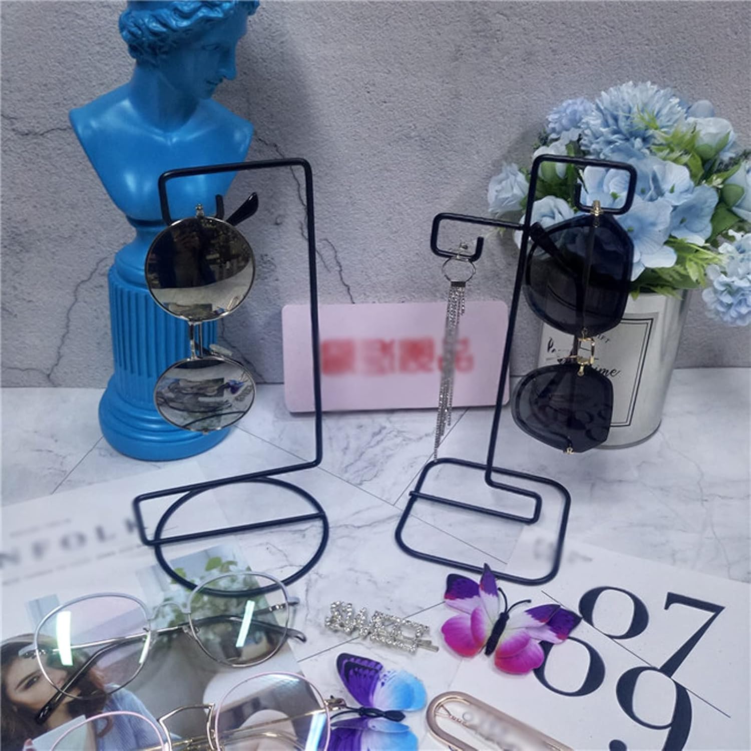 Product Name:Glasses Stand Product Size:10.5*23.5cm,10.5*23cm Product Packaging:1*Glasses Stand Prompt: 1.Please check the size and color before buying. 2. Except for the glasses stand in the picture, no other items are included. 3.Please note that different monitors may cause slight color differences, please understand. 4.Due to manual measurement, a small amount of error will occur. Please refer to the actual product, thank you. 5.Our shop has many styles and colors, you can check it in my shop. 6.Welcome your sharing and feedback so that we can provide you with better products and services. Great sunglasses organizer for the bedroom or dessert table to organize and display your sunglasses, glasses and other accessories.