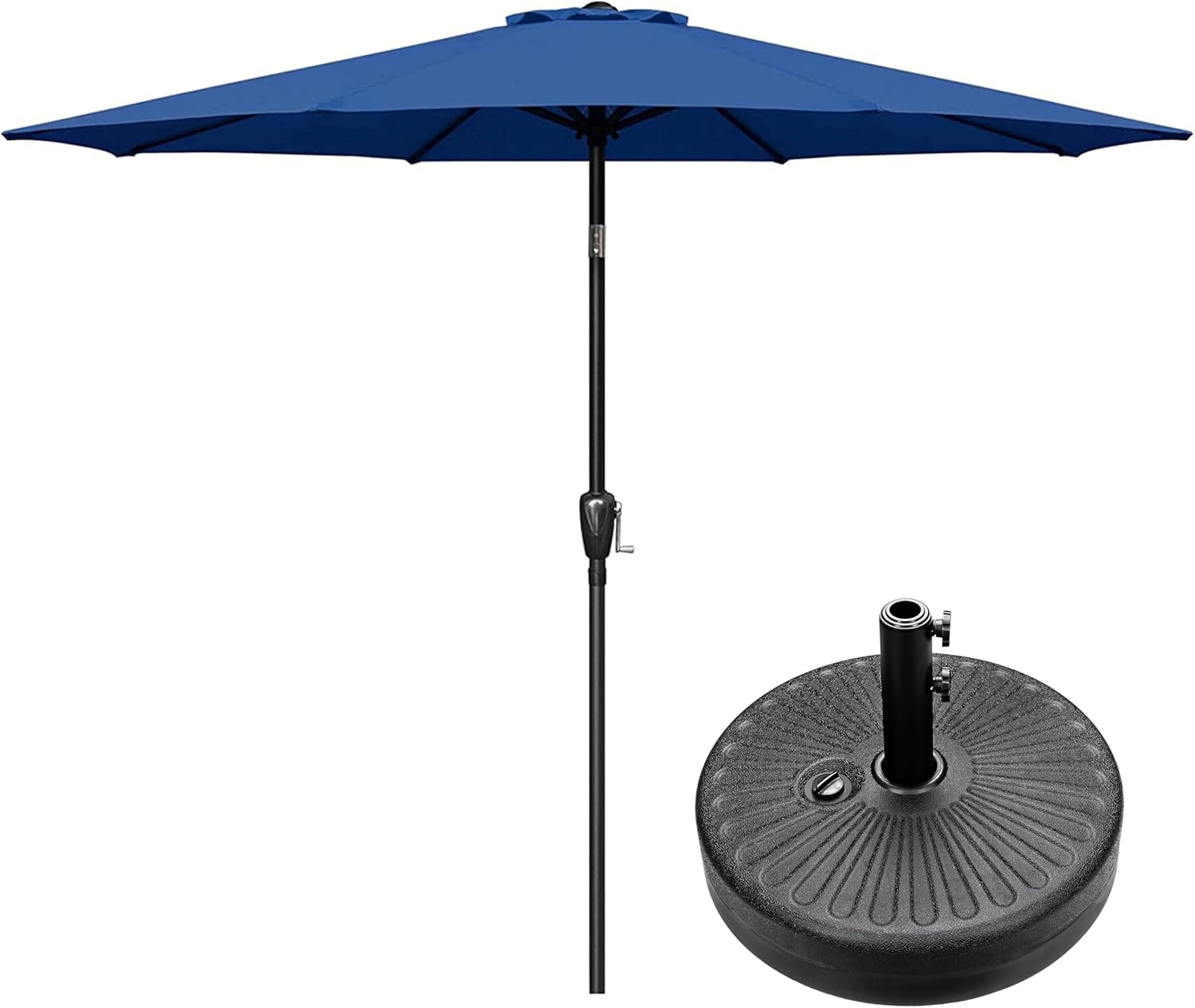 Simple Deluxe 9FT Outdoor Patio Umbrella Table Market Umbrella with Push Button Tilt and Crank and 50lbs Base Stand, for Garden, Lawn, Deck, Backyard, Pool, Grey